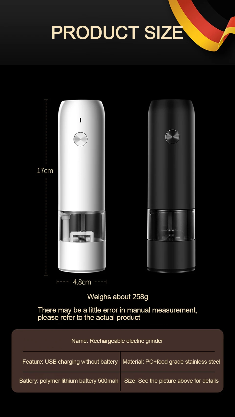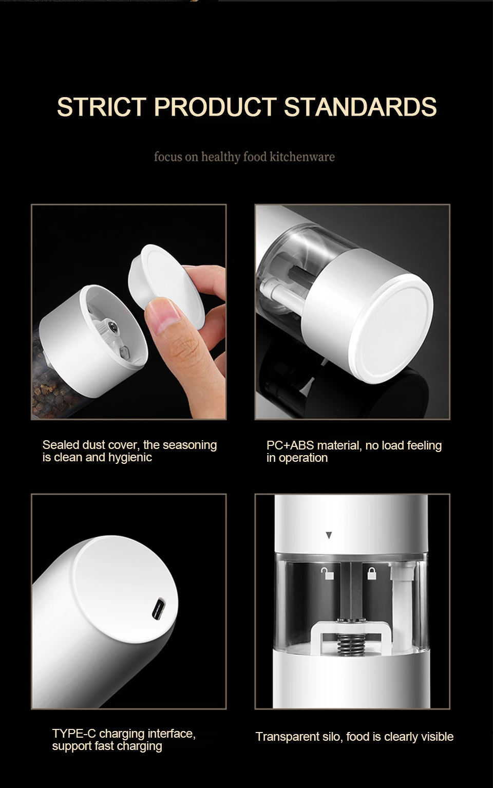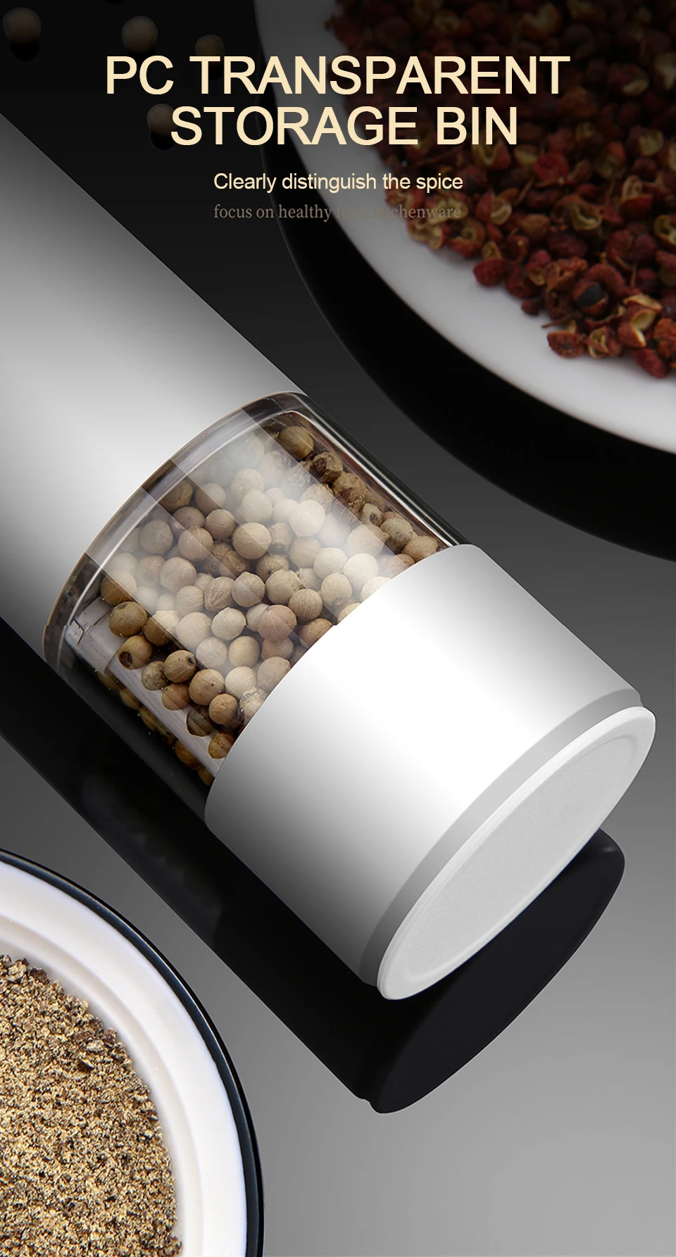 Характеристики: гравитационная Индукционная мельница для соли и перца
