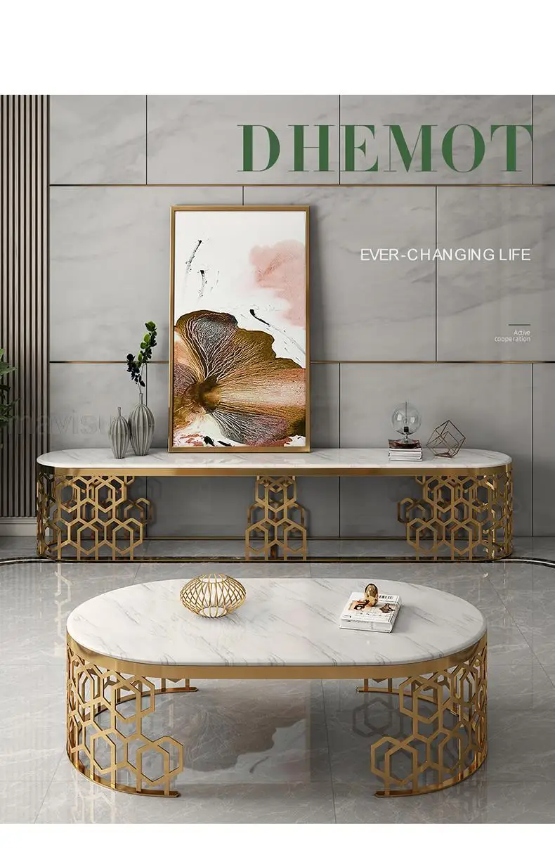 Светильник, роскошный Простой полый журнальный столик из нержавеющей стали, современный креативный Овальный гостиничный отель