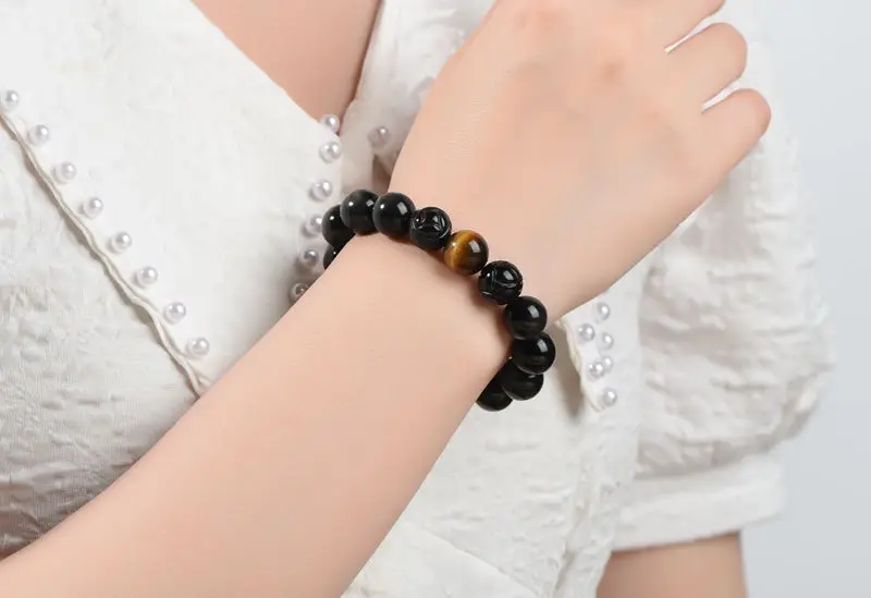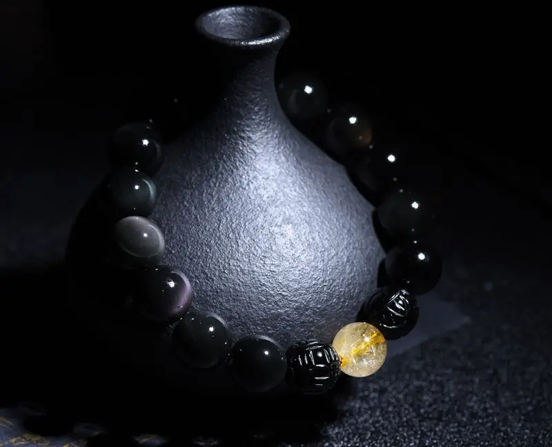 Тип изделия: черный буддийский браслет из обсидиана