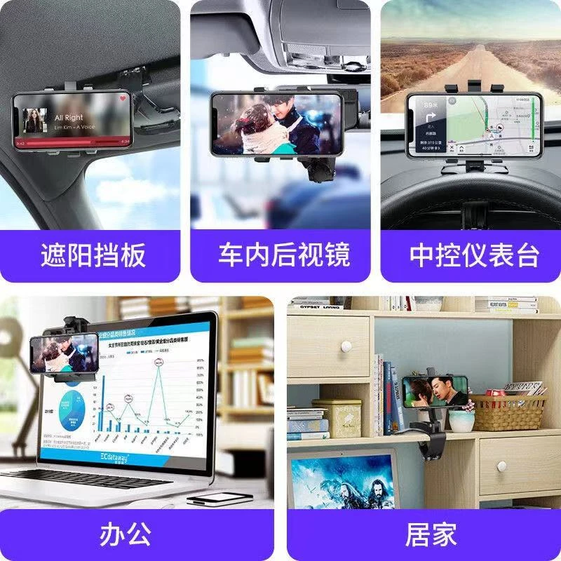 Вращающийся на 360 ° Автомобильный держатель для мобильного телефона Автомобильный солнцезащитный козырек приборная панель Держатель для мобильного телефона
