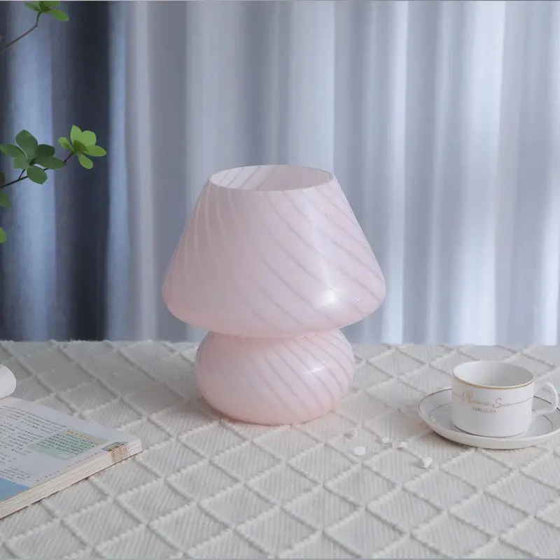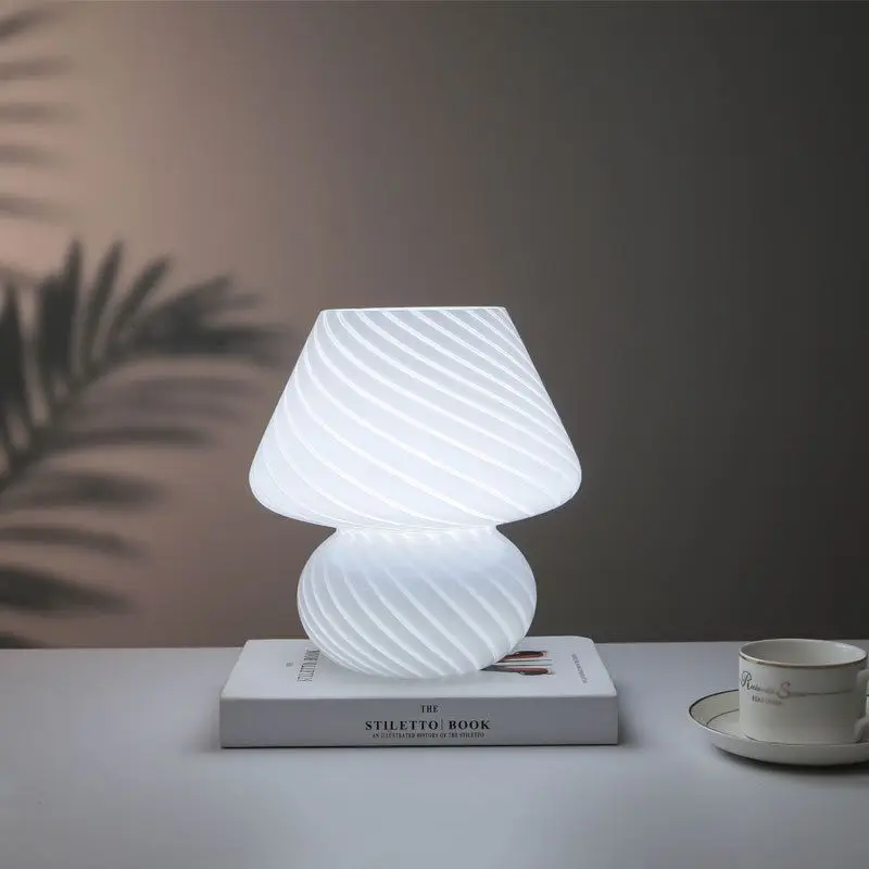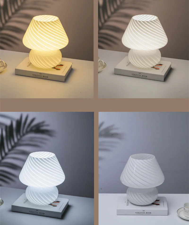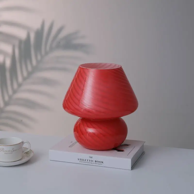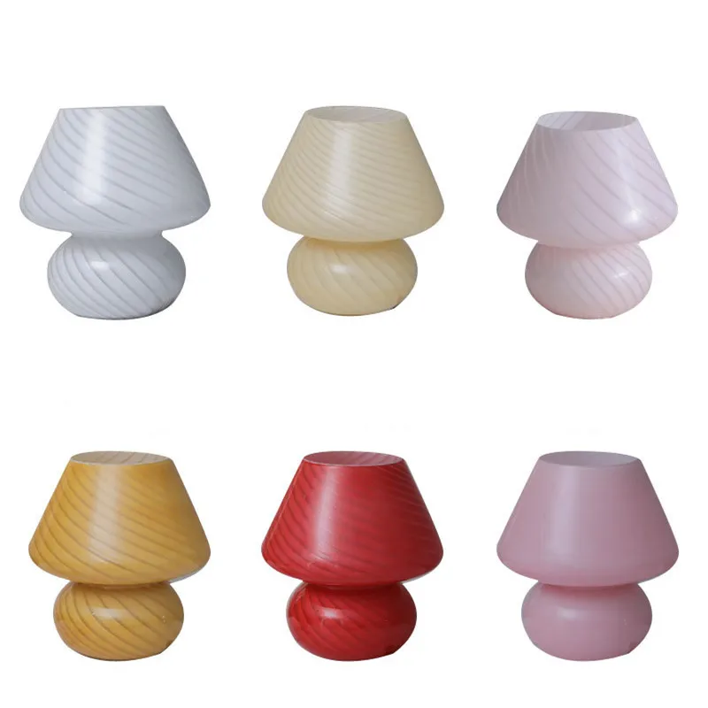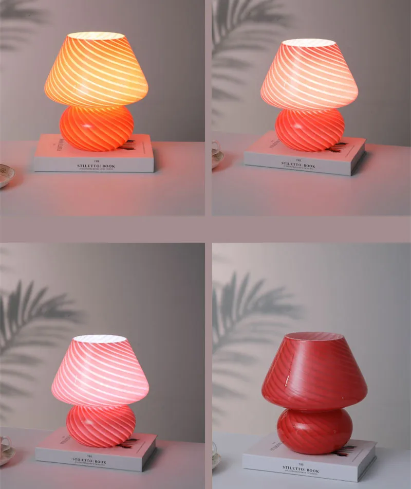 Большой размер 9,05 дюймов стеклянный гриб светодиодный светильник для спальни AC90V ~ 265VMurano стиль 3 цвета освещение полосатый гриб лампа