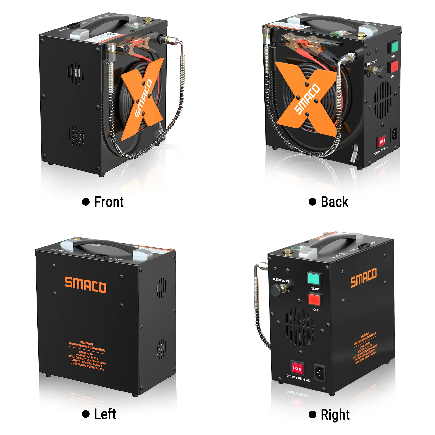 ☆Конструкция защитного устройства 3 типа и удобная конструкция проволочной катушки: регулируемый манометр, предохранительный клапан и диск разрыва делают этот воздушный компрессор более безопасным. С проволочной катушкой вам не нужно беспокоиться о намотке проволоки, и она также становится красивой.