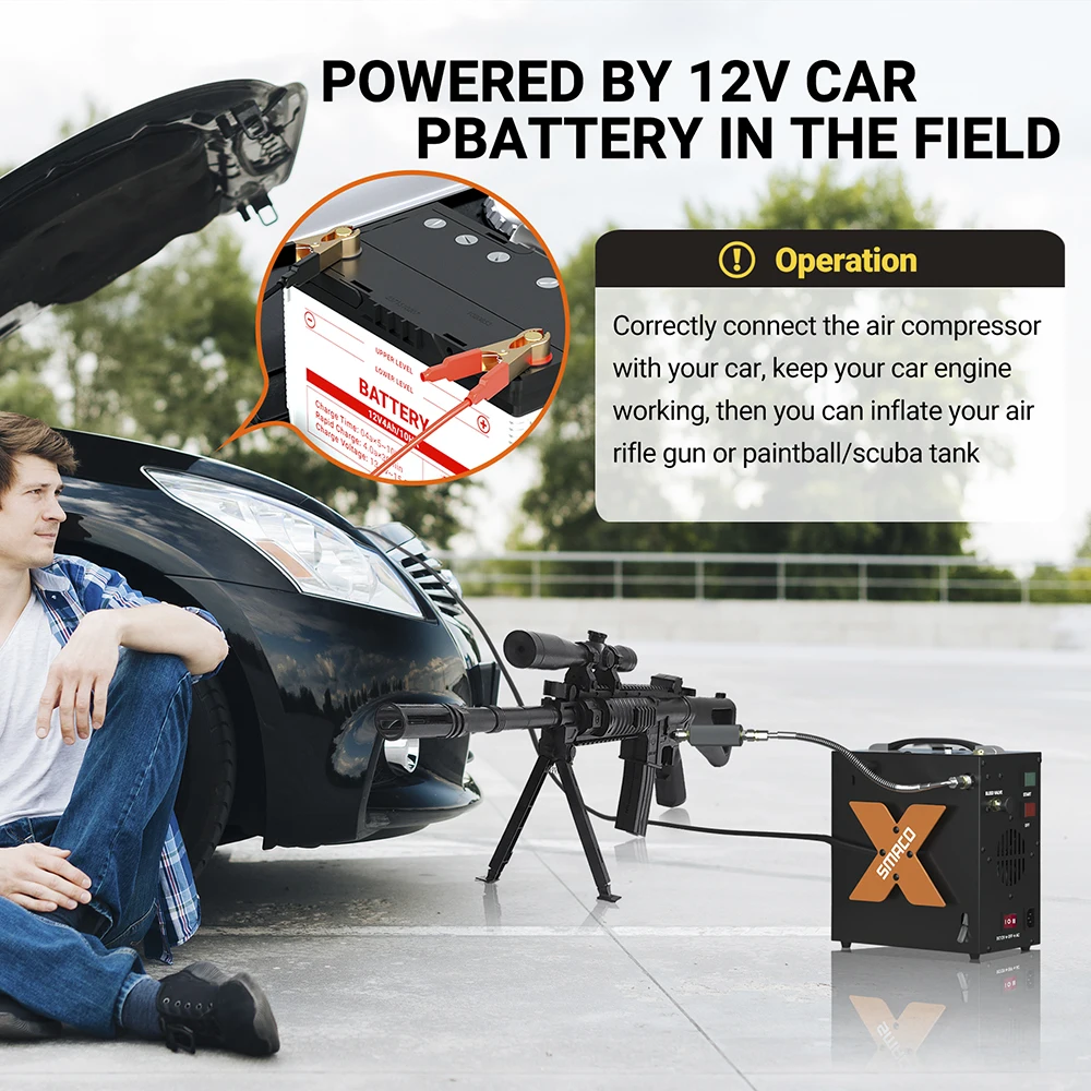 ☆Автомобиль 12 В постоянного тока или дома 110 В переменного тока выбор мощности: этот воздушный компрессор может быть подпитан автомобильным аккумулятором 12 В (Примечание: Не автомобильный сигаретный светильник), aslo может питаться от домашней розетки переменного тока с дополнительным преобразователем 110-12 В (входит в комплект). Это сделает эту воздушную помпу более полезной, так как вы можете использовать ее в любом месте. У вас есть 1 год гарантии на каждый насос PCP.