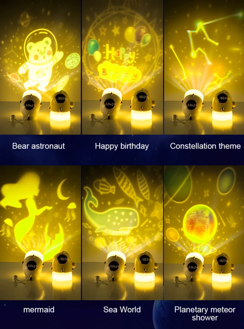 1. Звездная лампа часов имеет функцию часов и домашнюю проекцию. Светильник мягкий и очень подходит для проекции в ночное время.