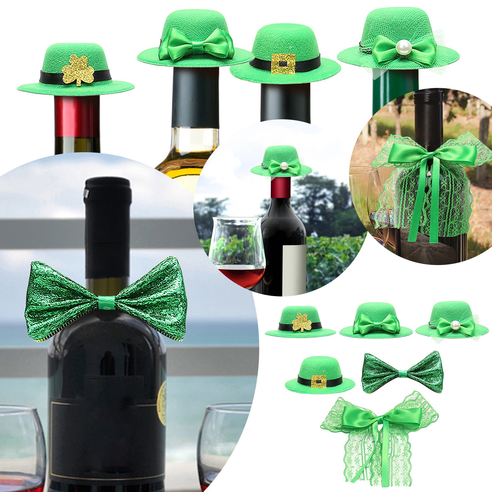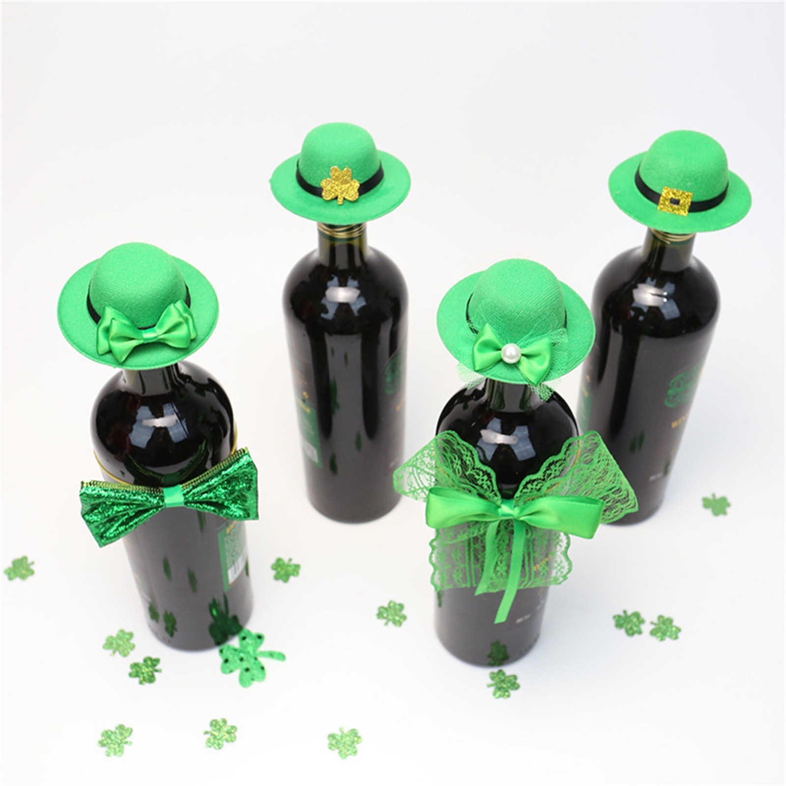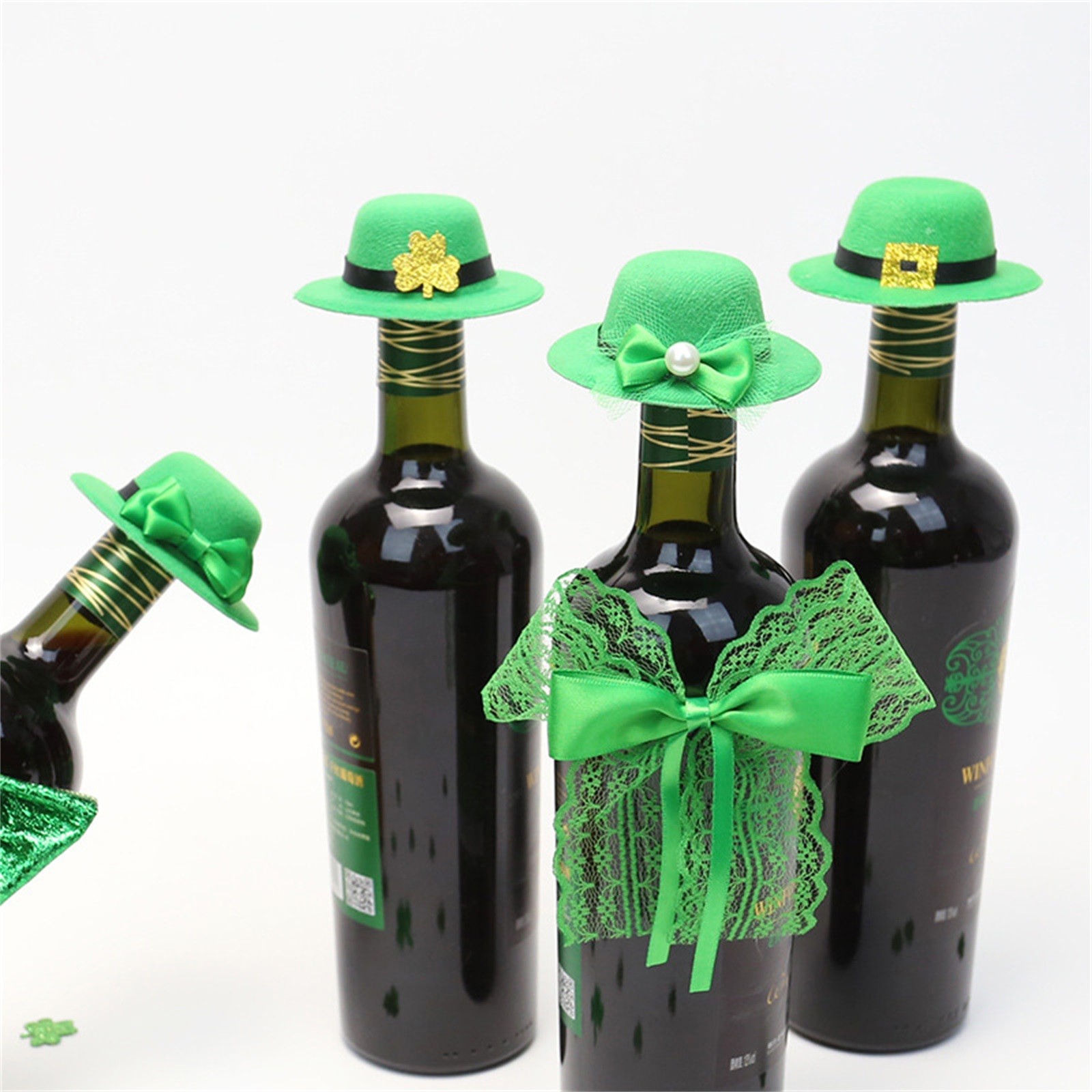 Mini Hat, St. Patrick'S Hat, Wine Bottle, Silverware Holder, Home Christmas Decoration, Wine Bottle Decoration