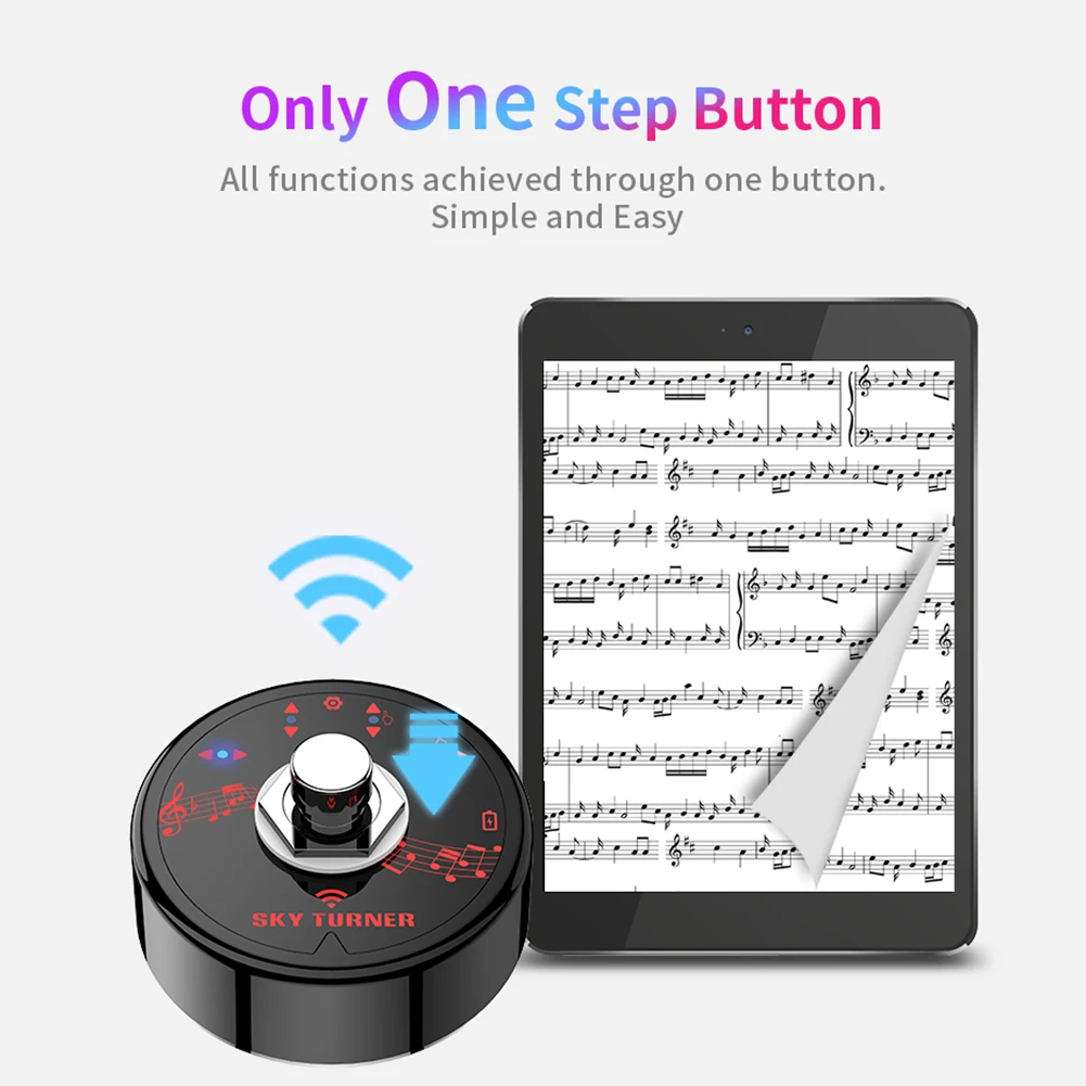 В процессе игры, исполнитель может легко завершить шаг поворота страницы, просто нажав на педаль.