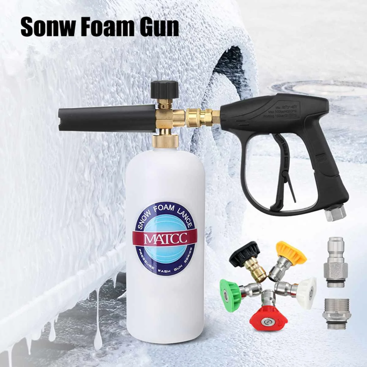 MATCC 200Bar 5 насадок Sonw Foam Gun 1/4 "быстрый соединитель Foam Lance Автомойка для мойки под давлением пистолет для мыла распылитель