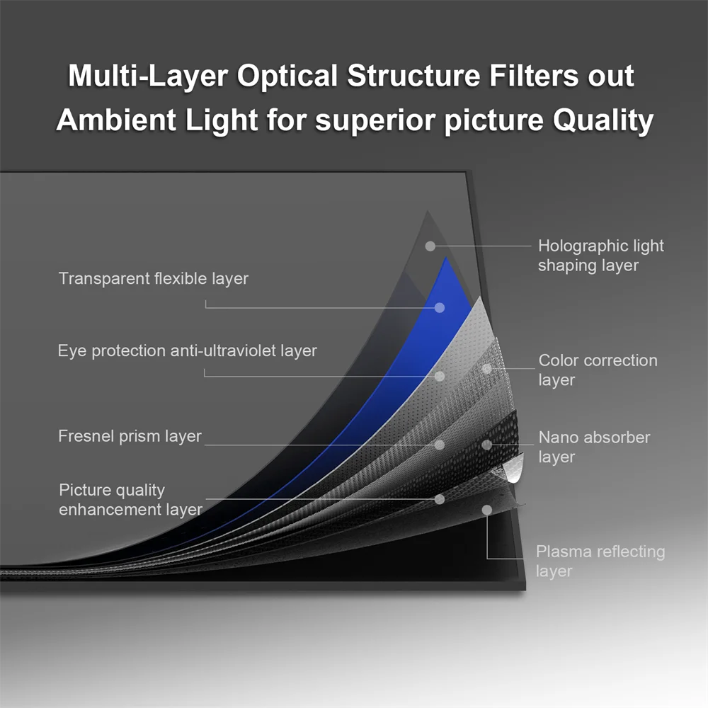 <Ультра короткие проекторы партнеров>: Материал WEMAX ALR улучшает насыщенность цвета, а Многослойные оптические структуры устраняют проникновение на светильник. Экран WEMAX ALR совместим со стандартными проекторами коротких бросков и коротких бросков Untra.