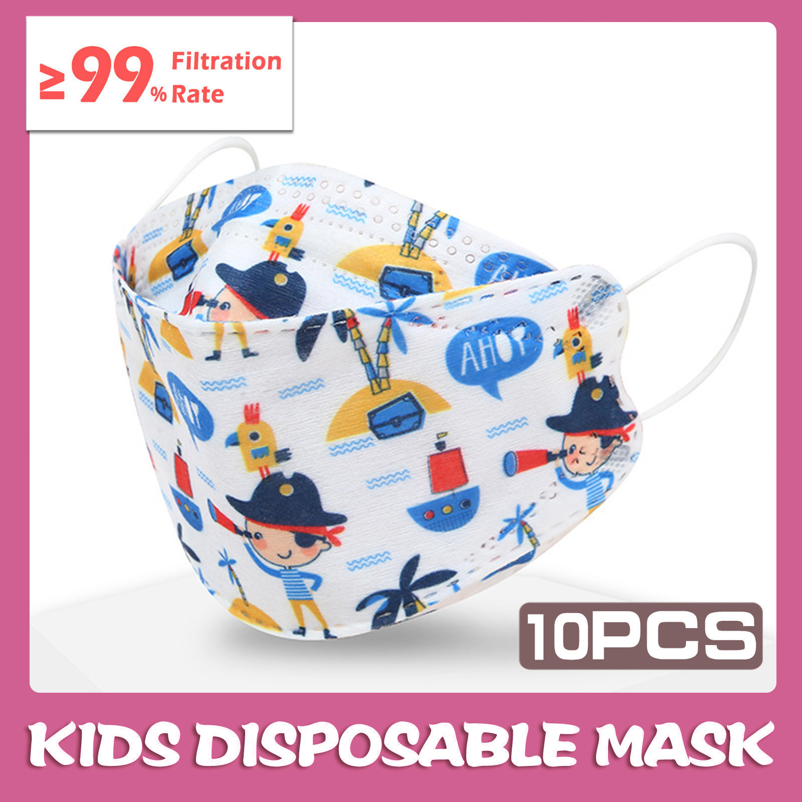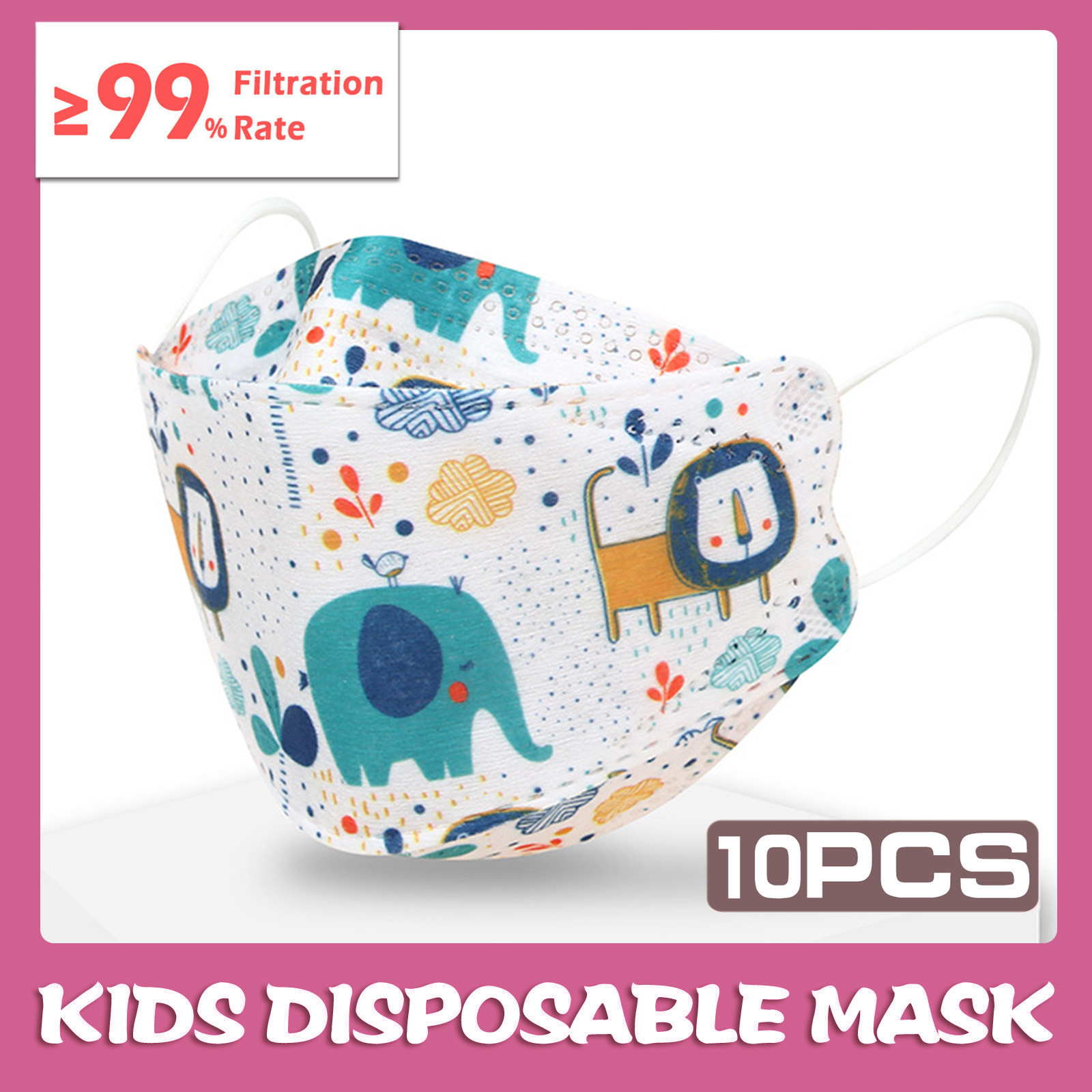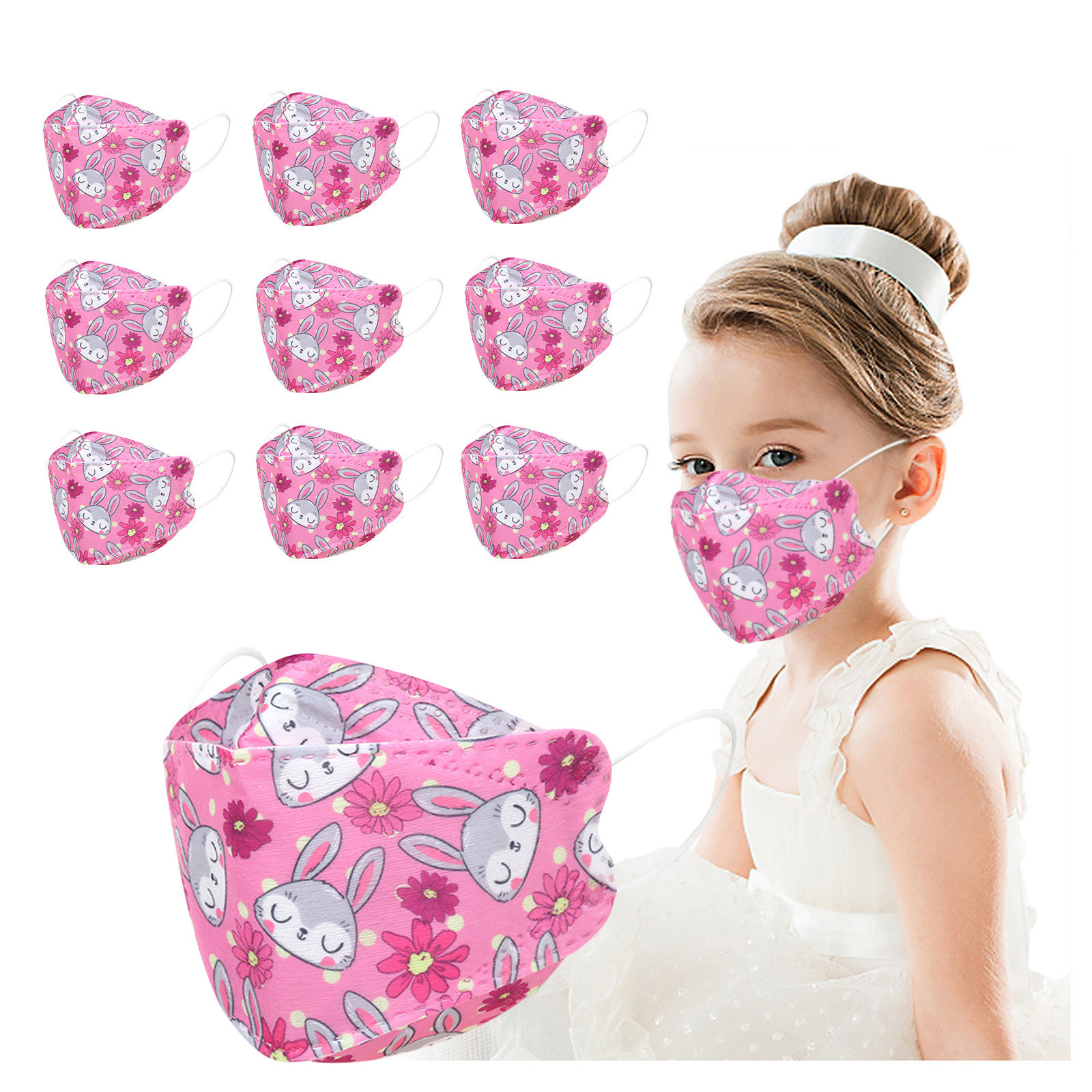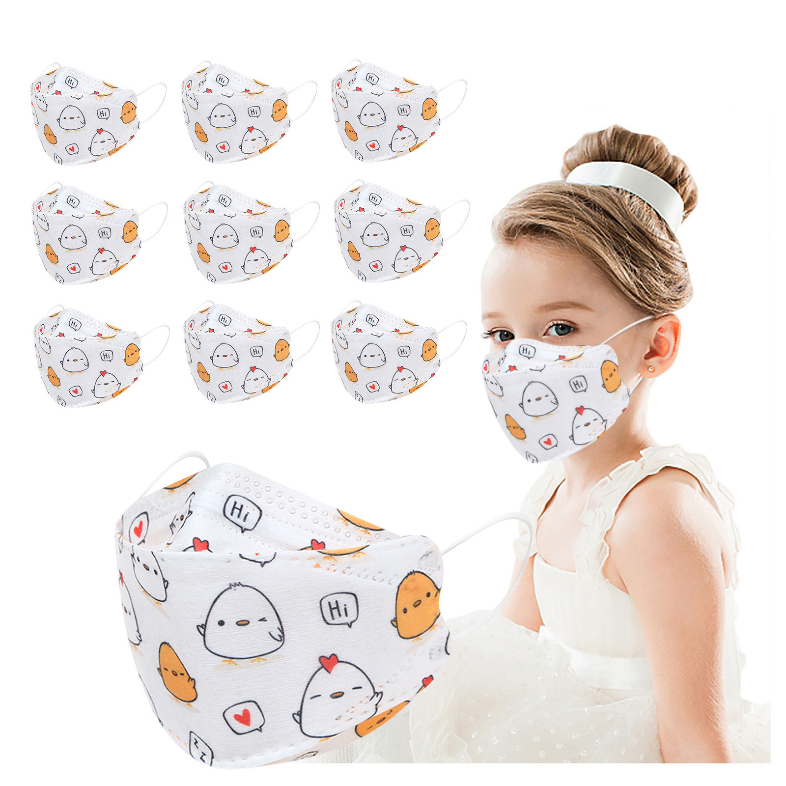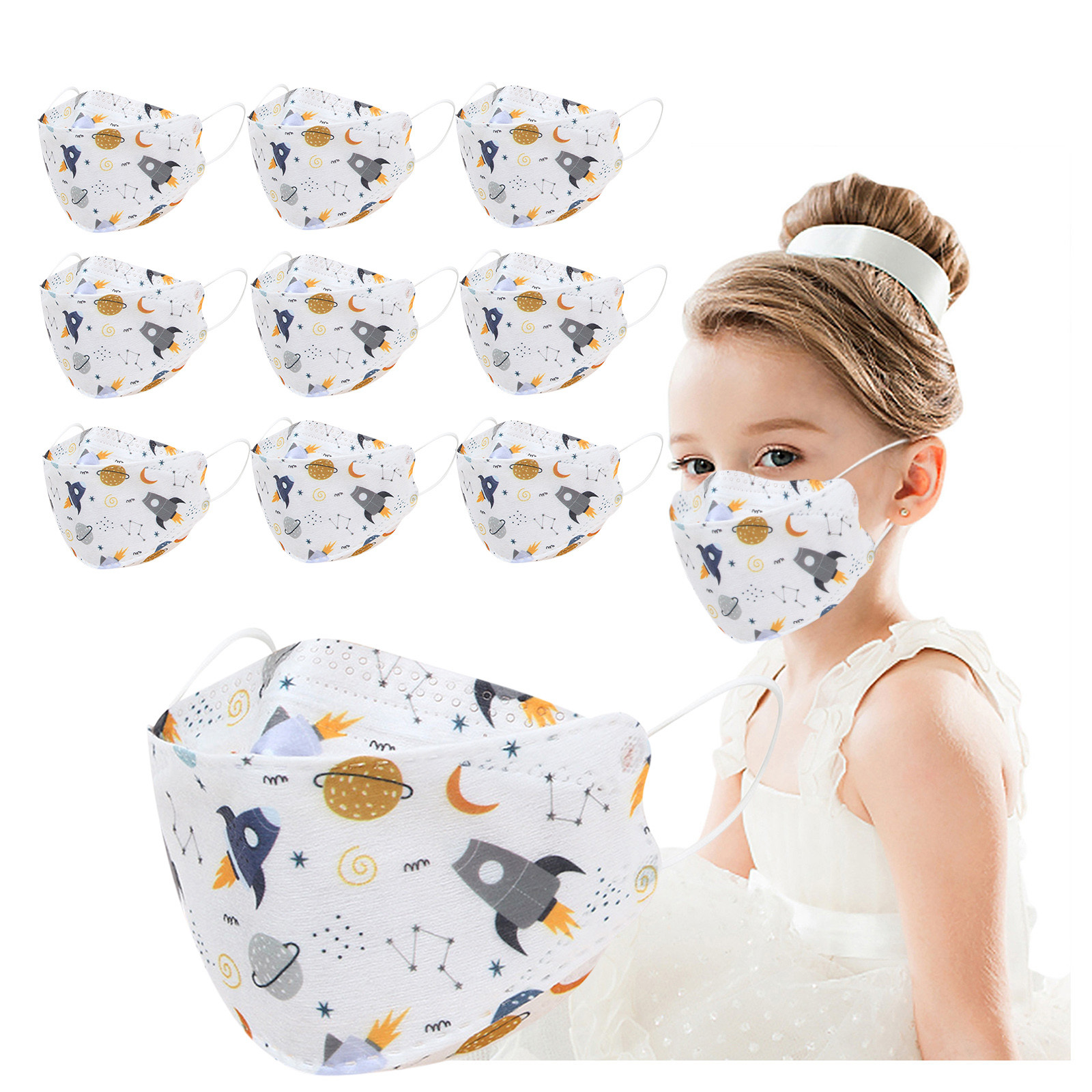 Kids Children's Baby Boys Girls Cute Cartoon Mask Disposable Face Mask Cartoon Print 4Ply Ear Loop 10PC Masks