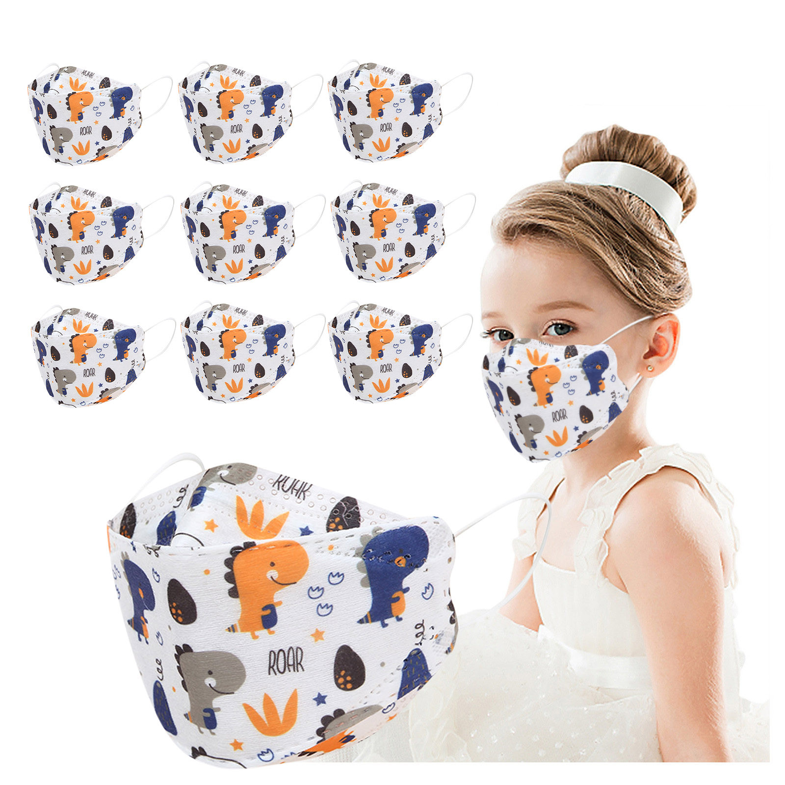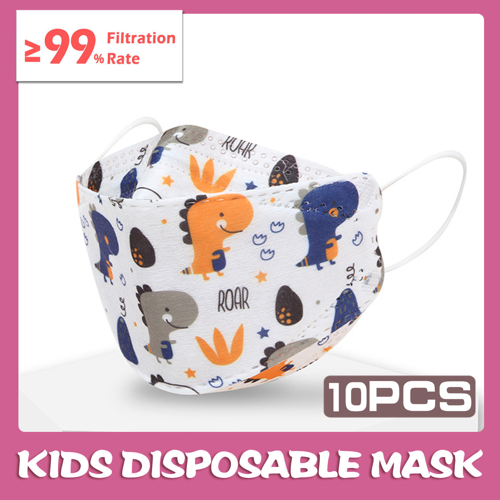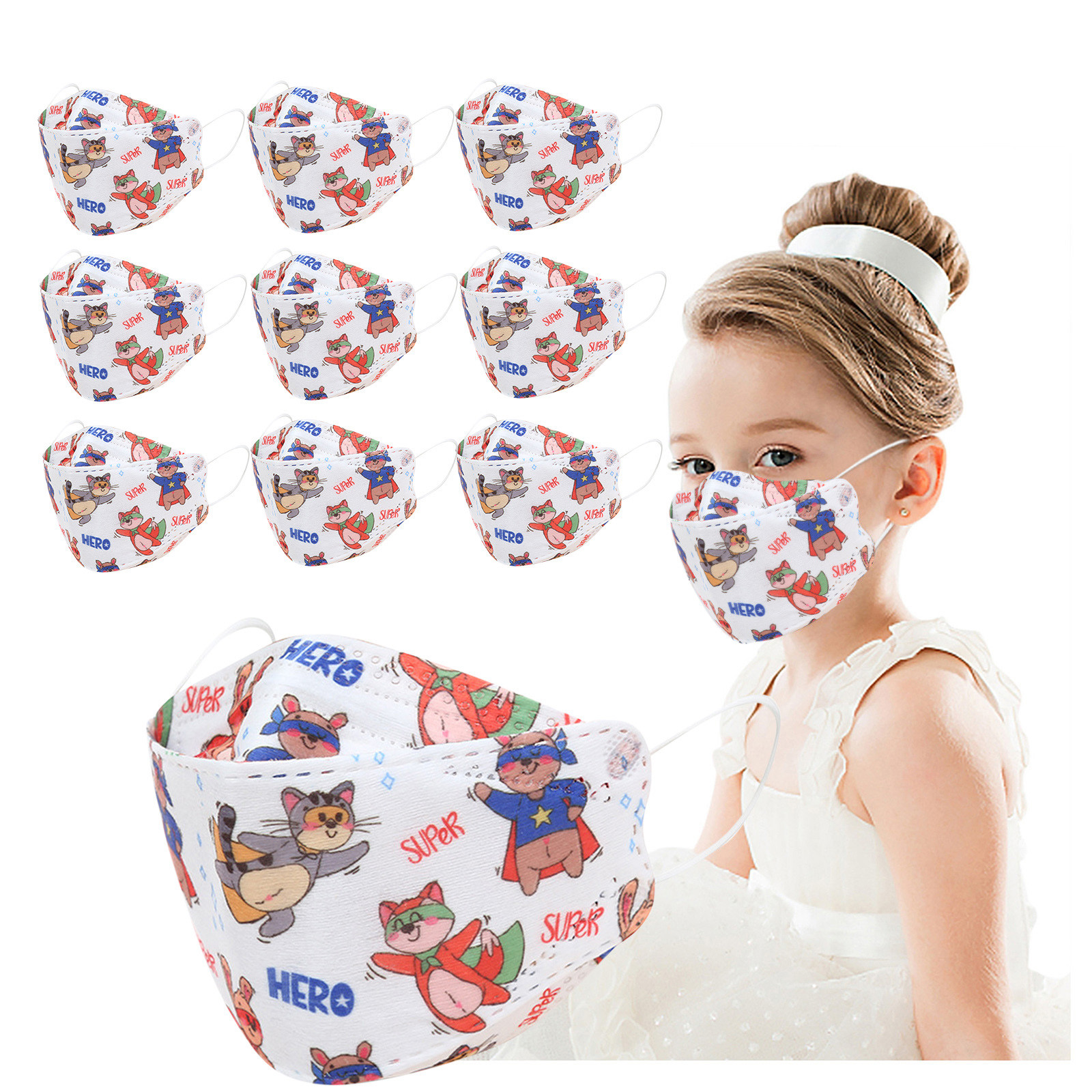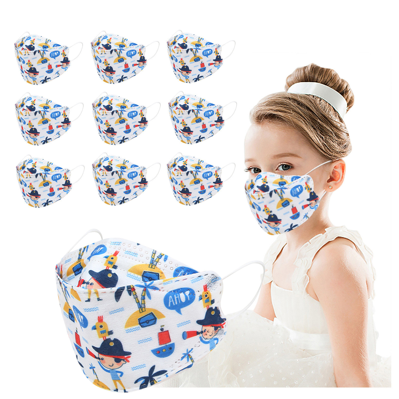 Kids Children's Baby Boys Girls Cute Cartoon Mask Disposable Face Mask Cartoon Print 4Ply Ear Loop 10PC Masks