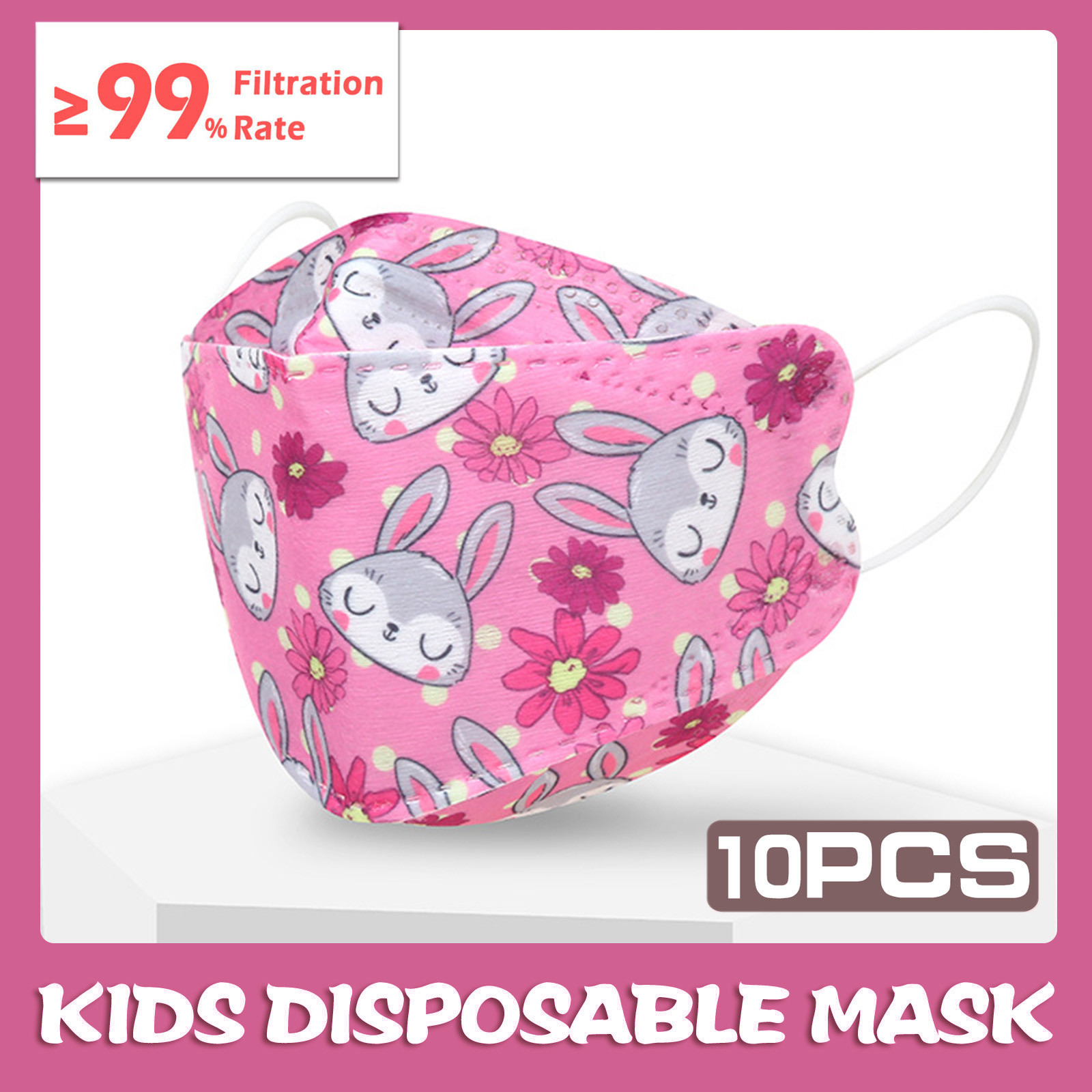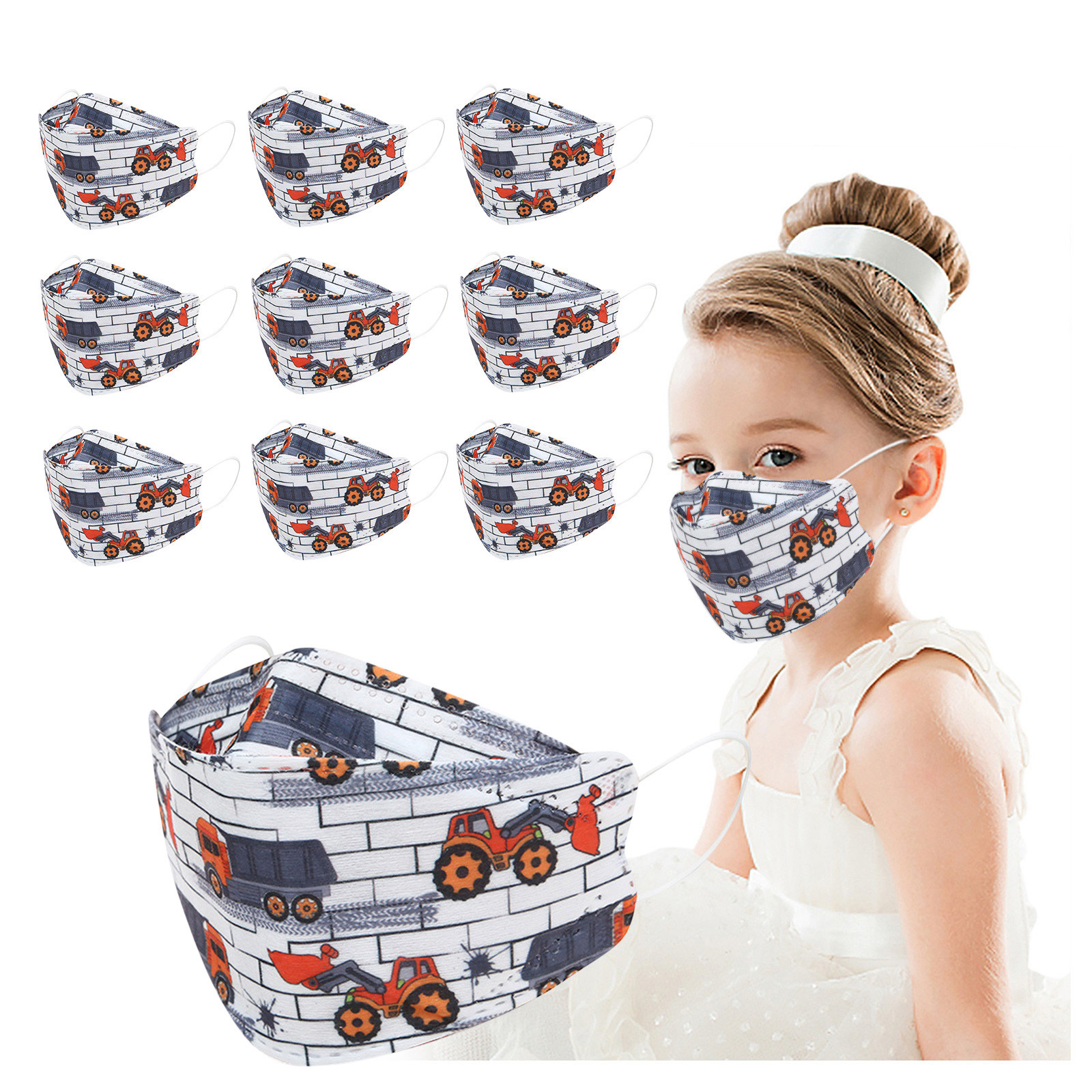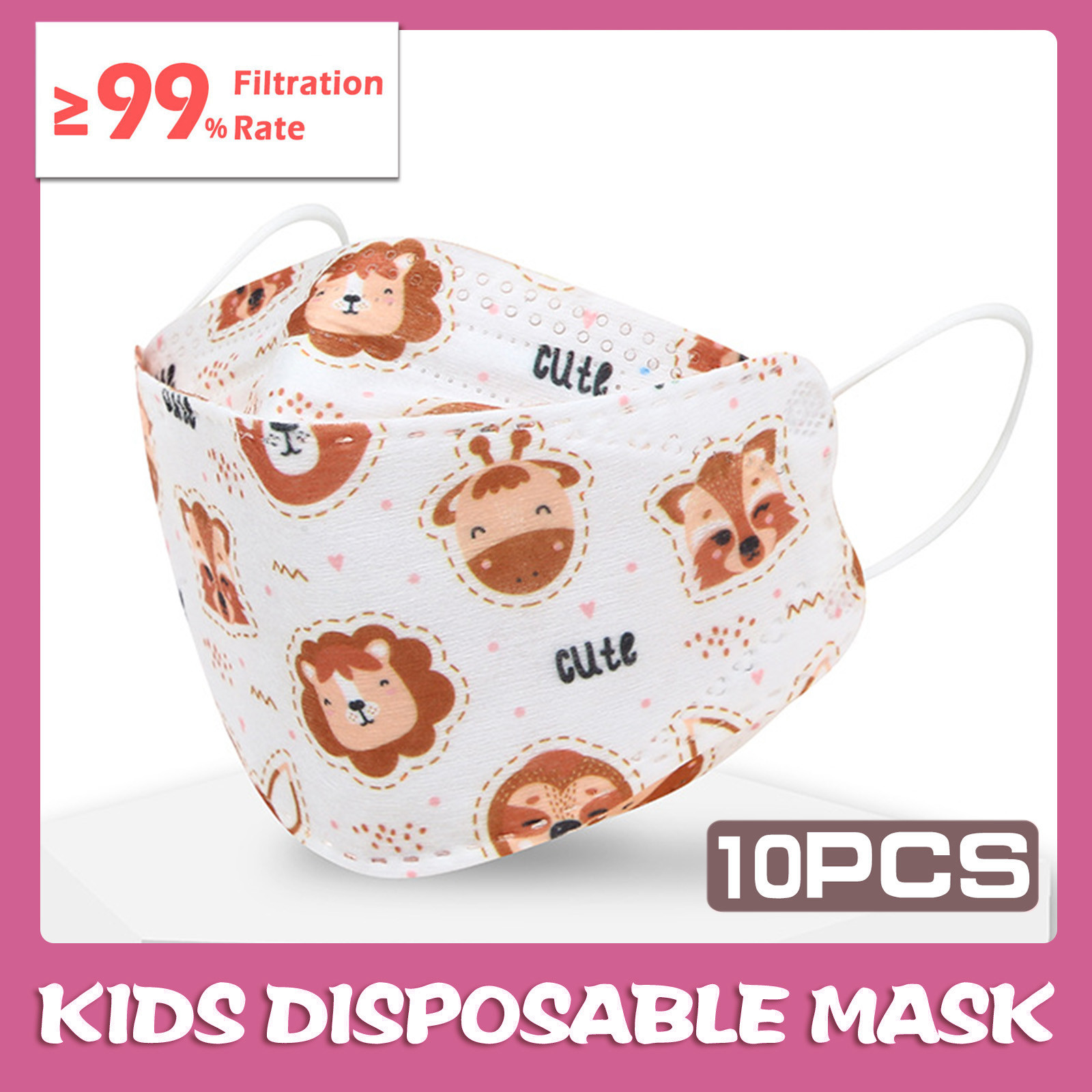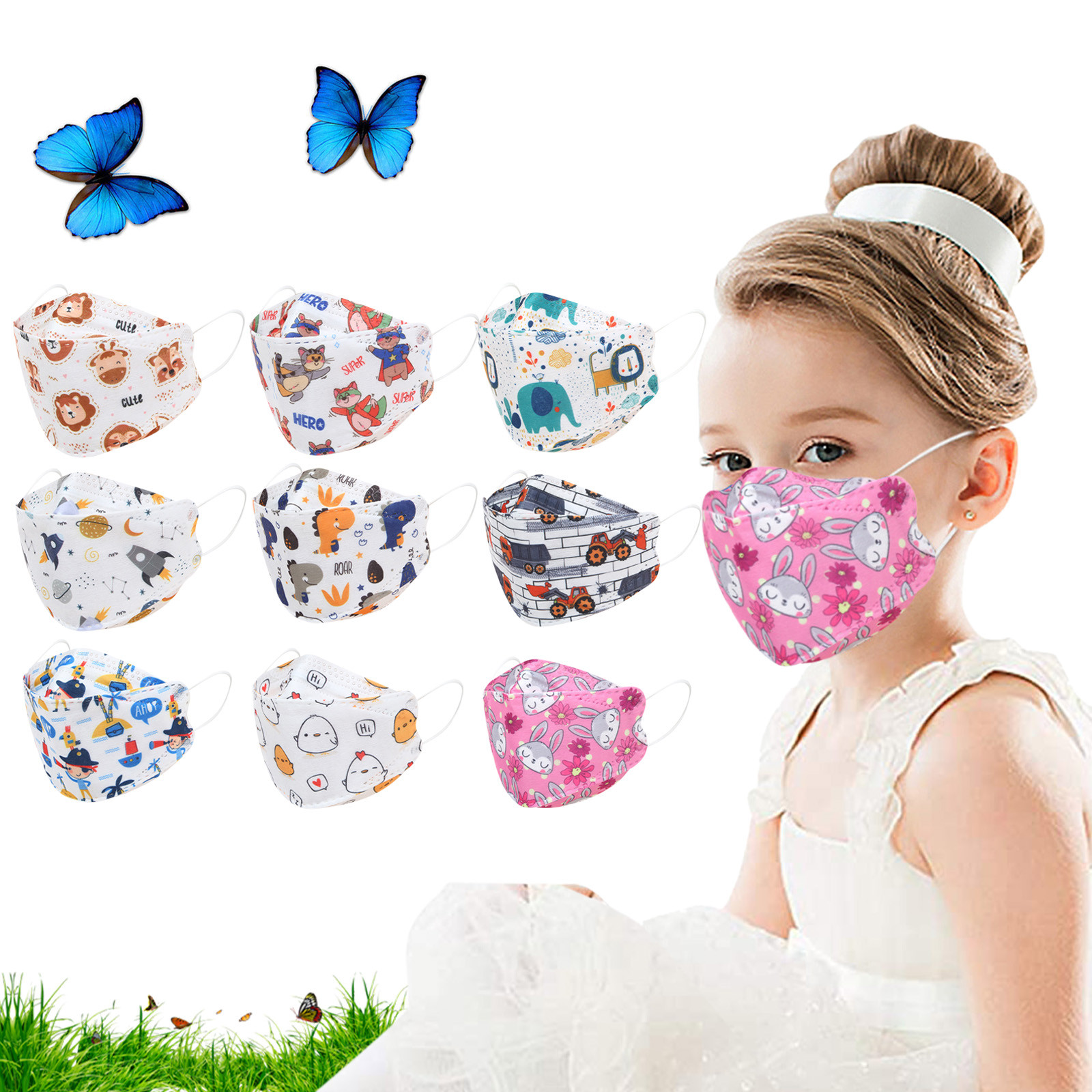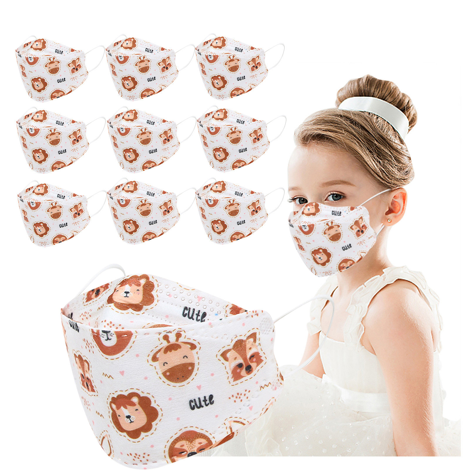 Kids Children's Baby Boys Girls Cute Cartoon Mask Disposable Face Mask Cartoon Print 4Ply Ear Loop 10PC Masks