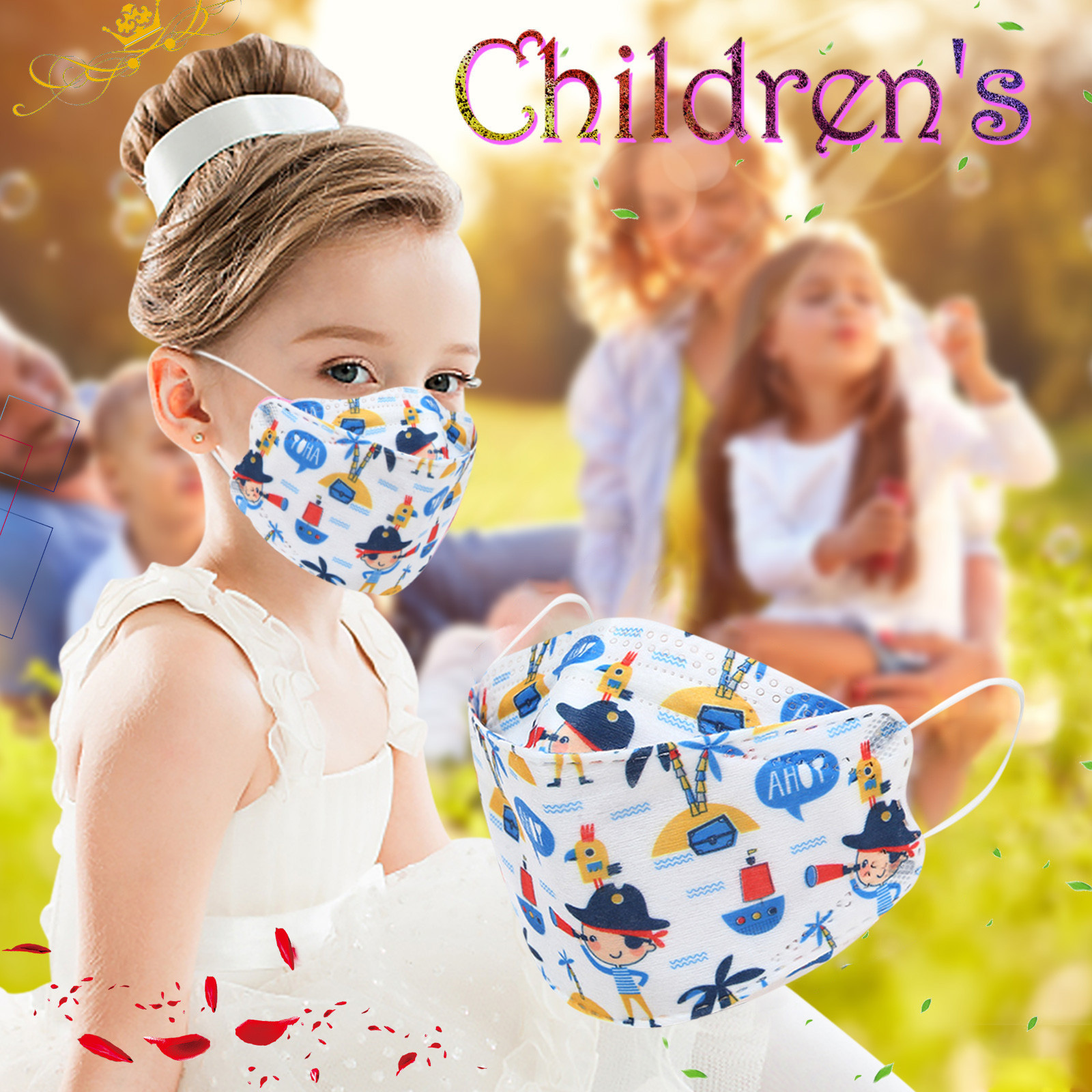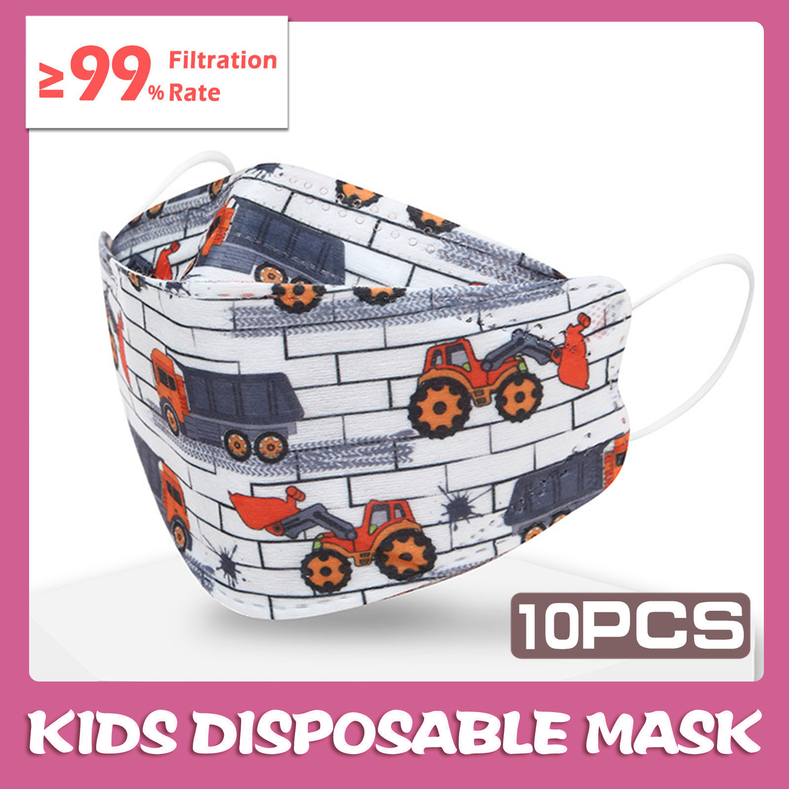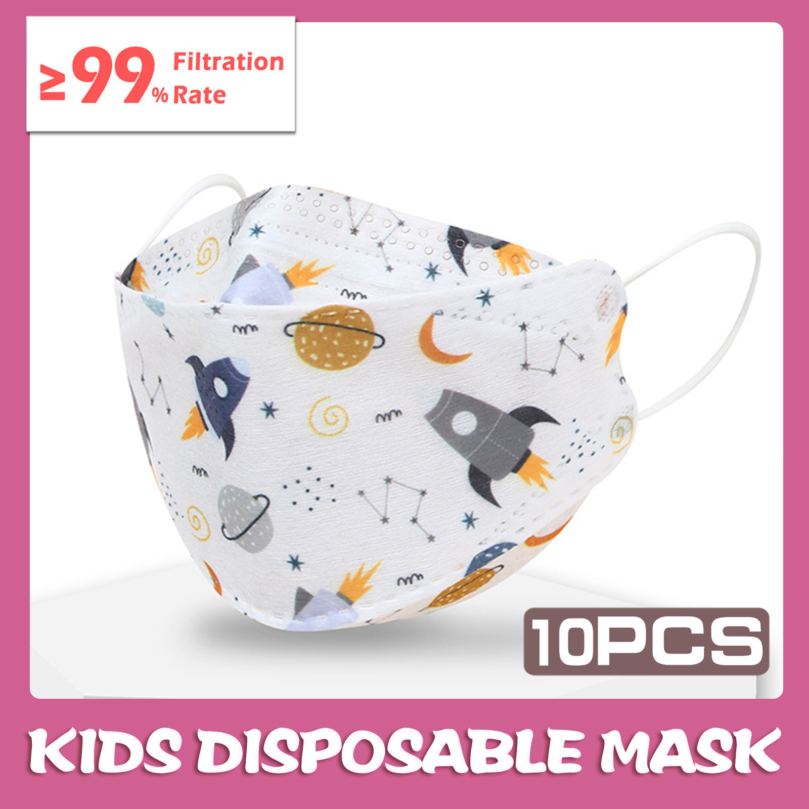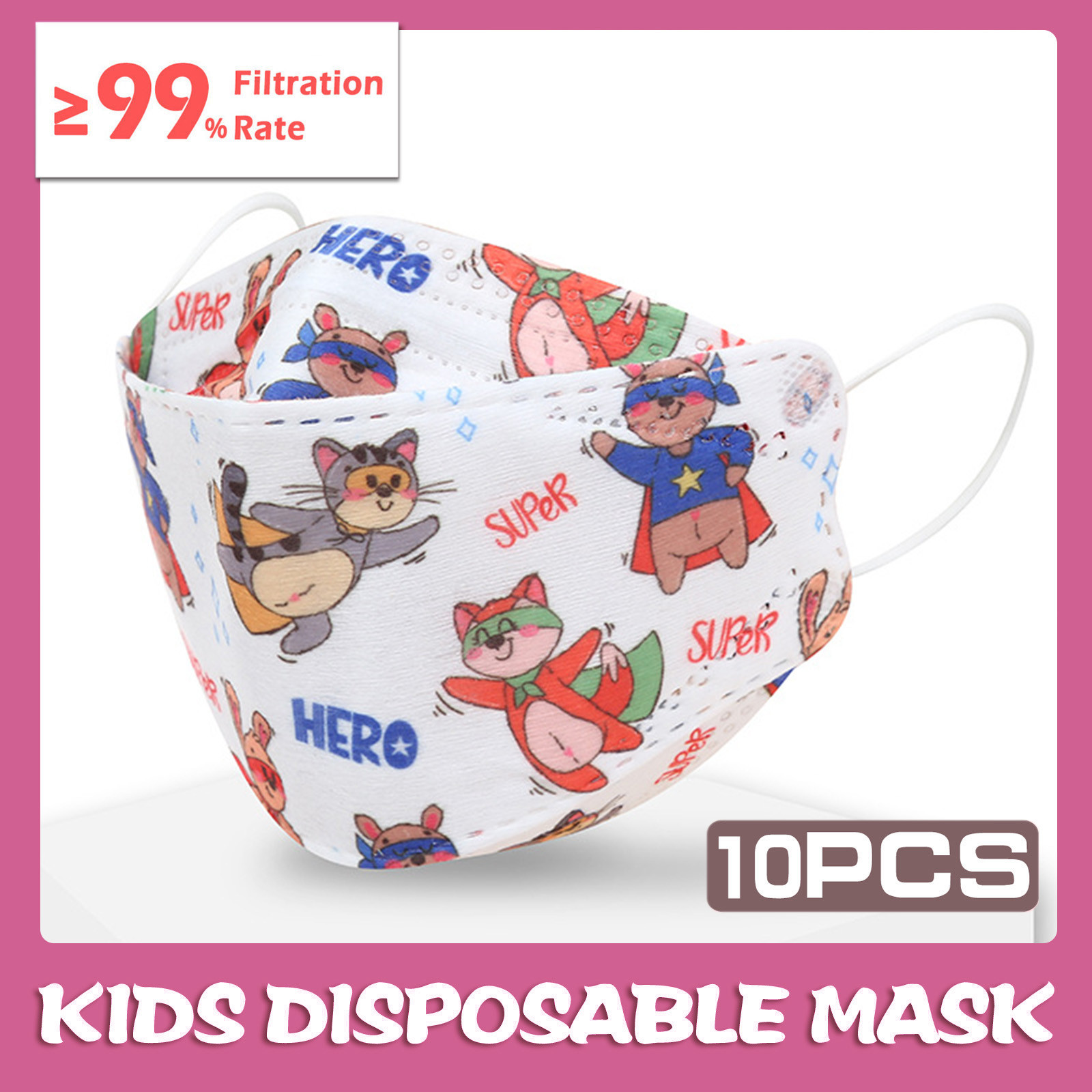 Kids Children's Baby Boys Girls Cute Cartoon Mask Disposable Face Mask Cartoon Print 4Ply Ear Loop 10PC Masks
