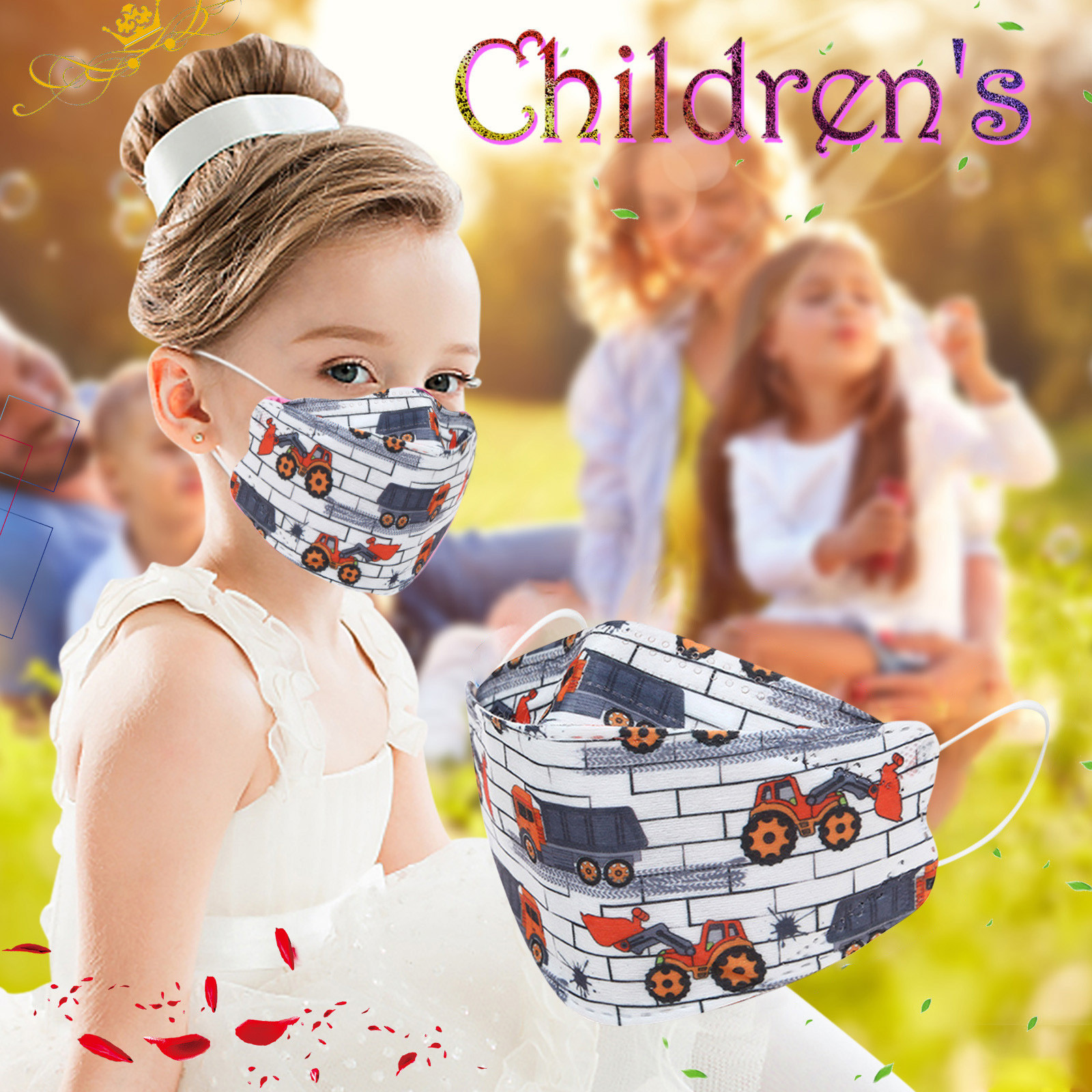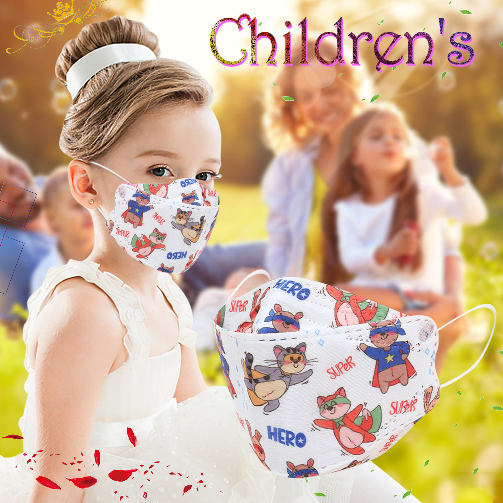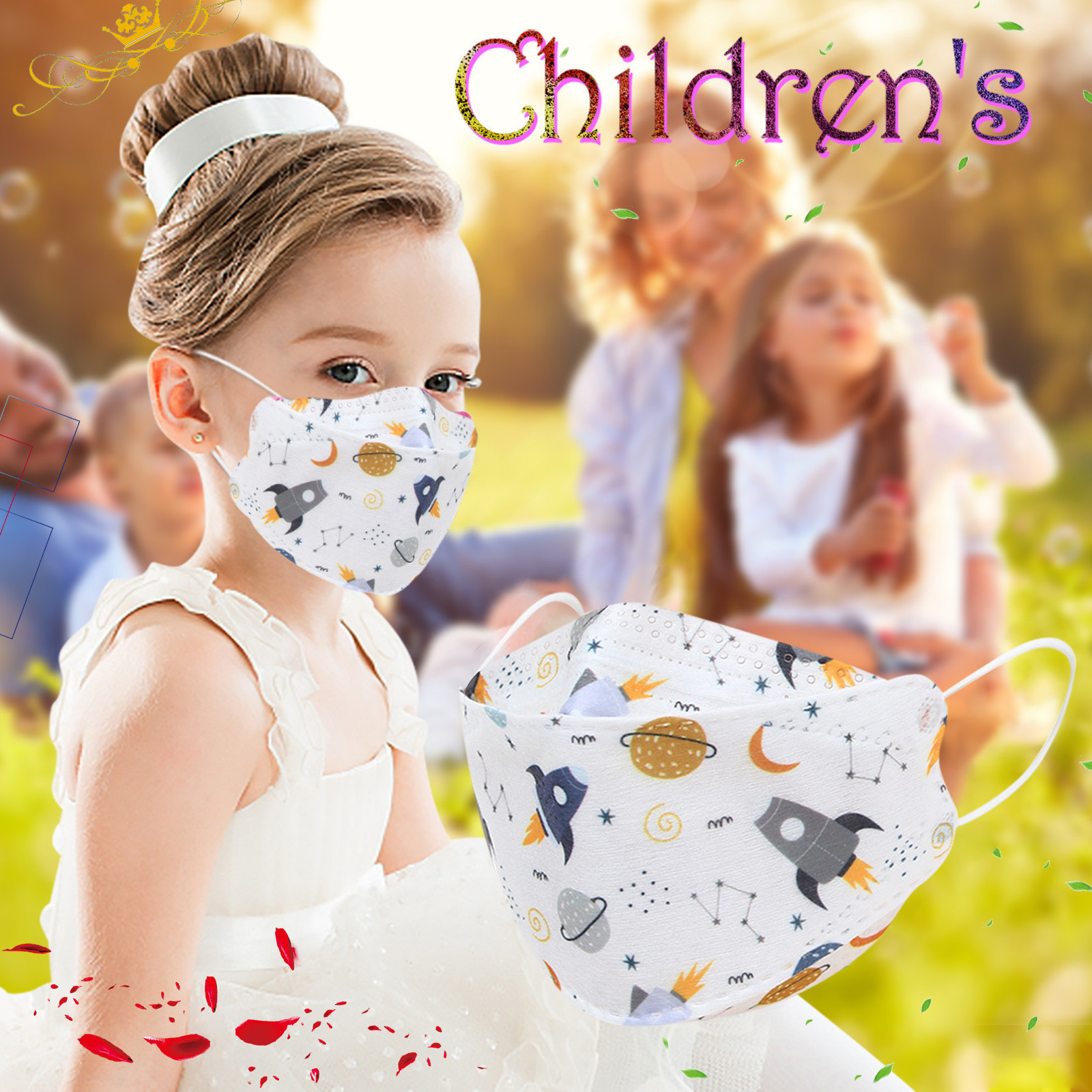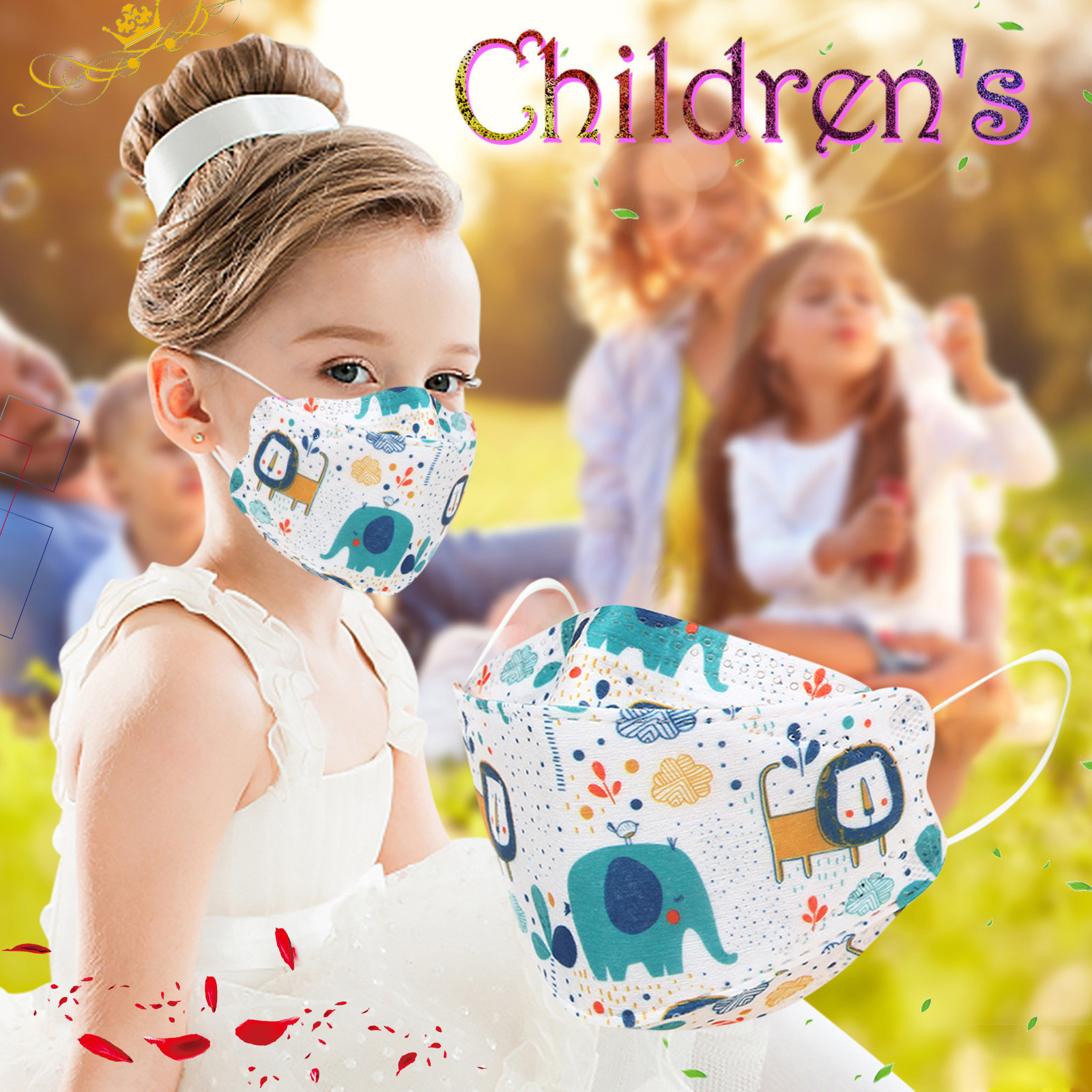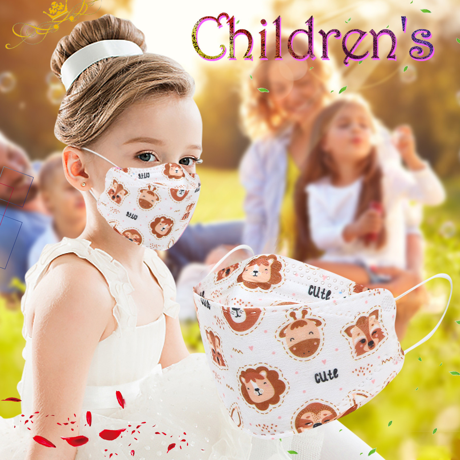 Kids Children's Baby Boys Girls Cute Cartoon Mask Disposable Face Mask Cartoon Print 4Ply Ear Loop 10PC Masks