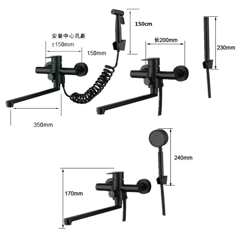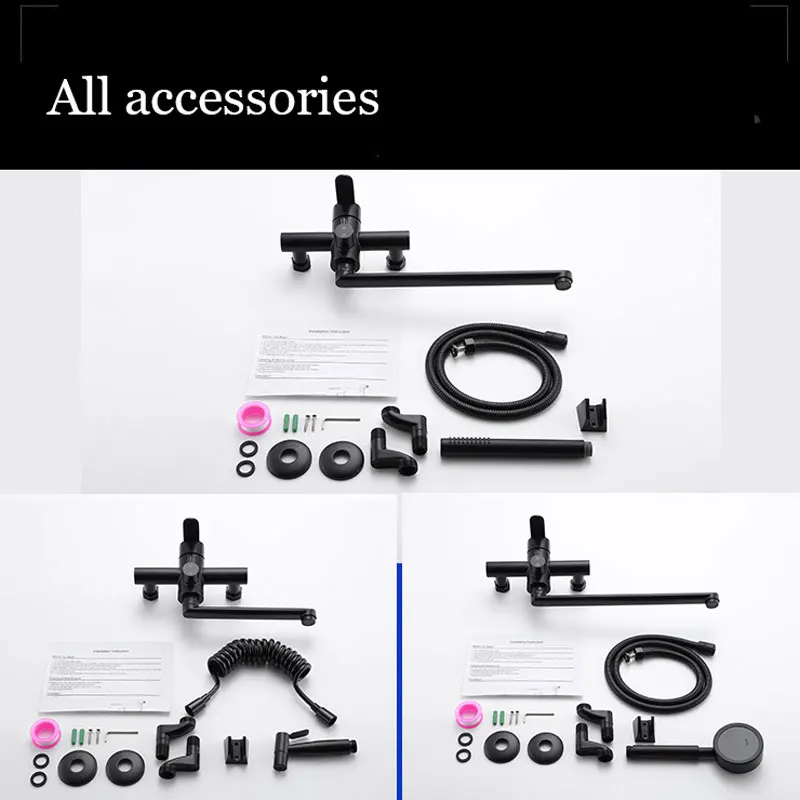 Черный настенный смеситель для ванной комнаты, смеситель для горячей и холодной воды, смеситель для душа, кран с распылителем