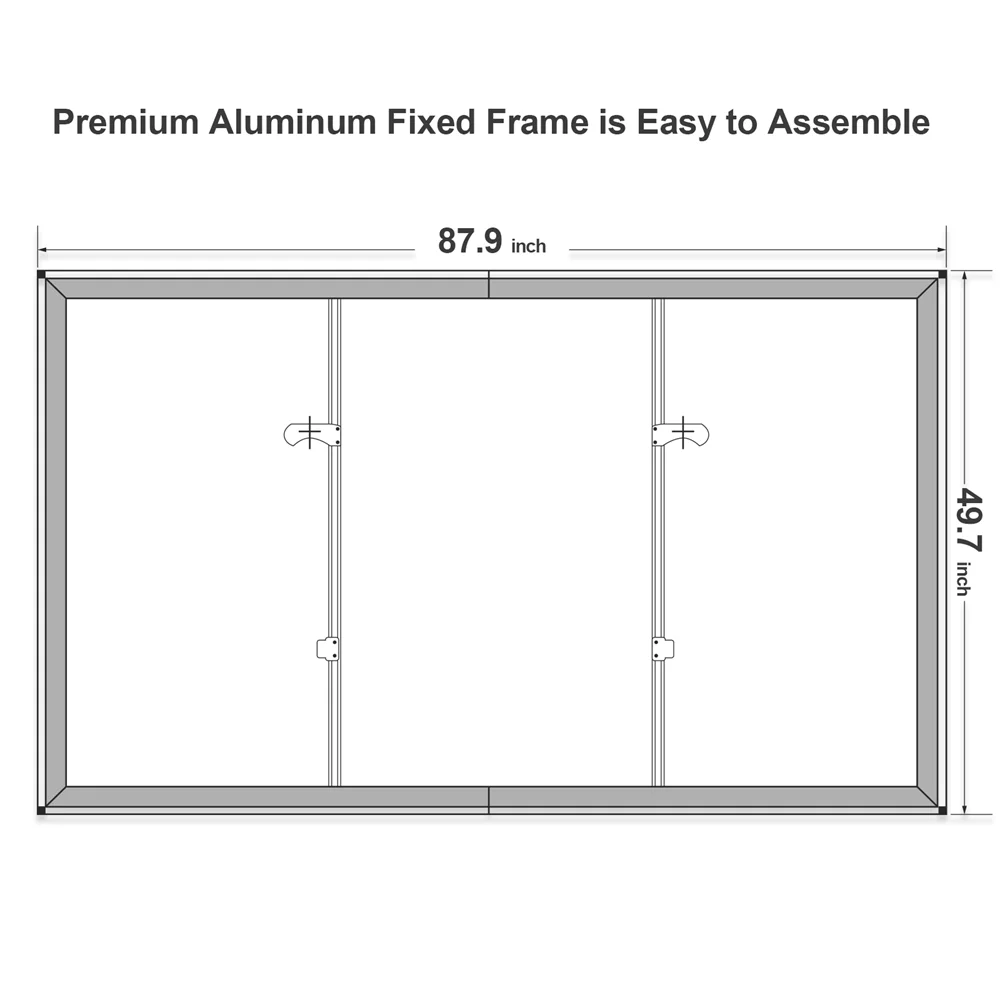 <Легко собрать>: Постоянно натянутый фиксированный Премиум-экран с алюминиевой рамкой легко собирается и обеспечивает плоскую и подтянутую поверхность без морщин.
