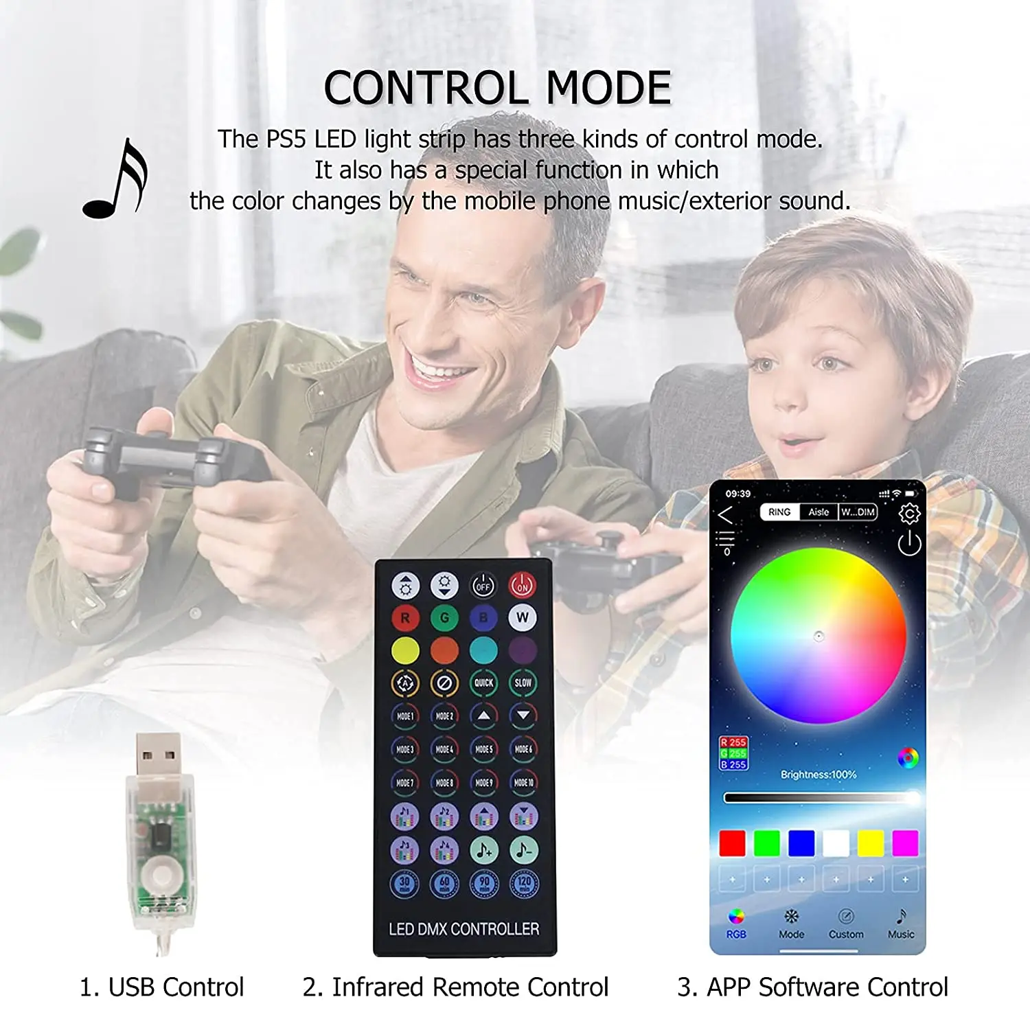 * Простота установки, просто очистите клейкую поверхность консоли и вставьте ленту, без дополнительных шагов, подключи и работай. Пульт дистанционного управления в упаковке может быстро затемнить режим освещения, настроить эффект освещения и имеет функцию памяти