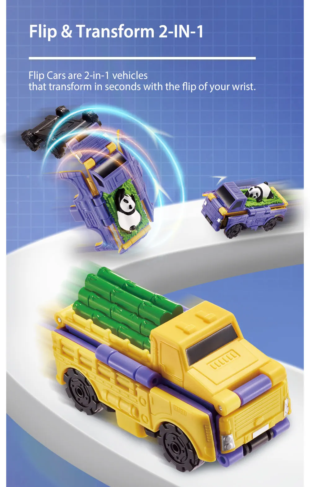 【 Легко играть 】Flip автомобили 2-в-1 транспортных средств, что преобразования за считанные секунды с сальто вашему запястью.