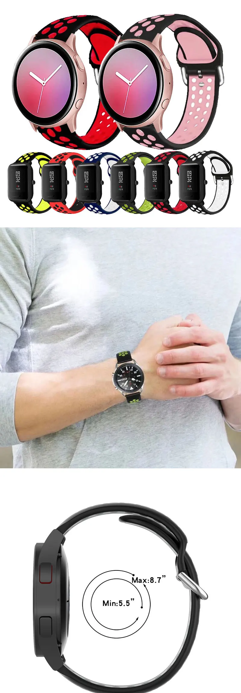 20 мм 22 мм correa для samsung galaxy active 2 40/часы 4 ремешка силиконовый спортивный браслет Amazfit bip u pro ремешок для Garmin Venu sq