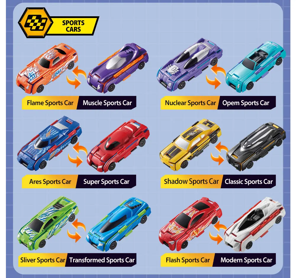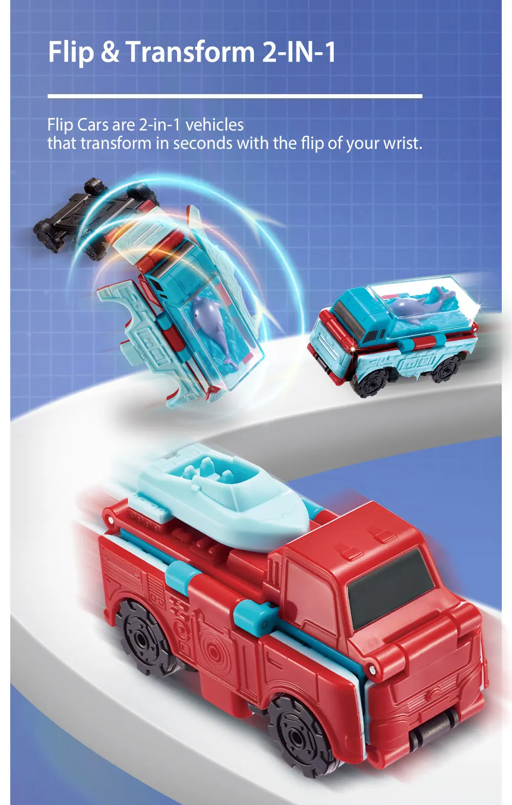 【 Легко играть 】Flip автомобили 2-в-1 транспортных средств, что преобразования за считанные секунды с сальто вашему запястью.