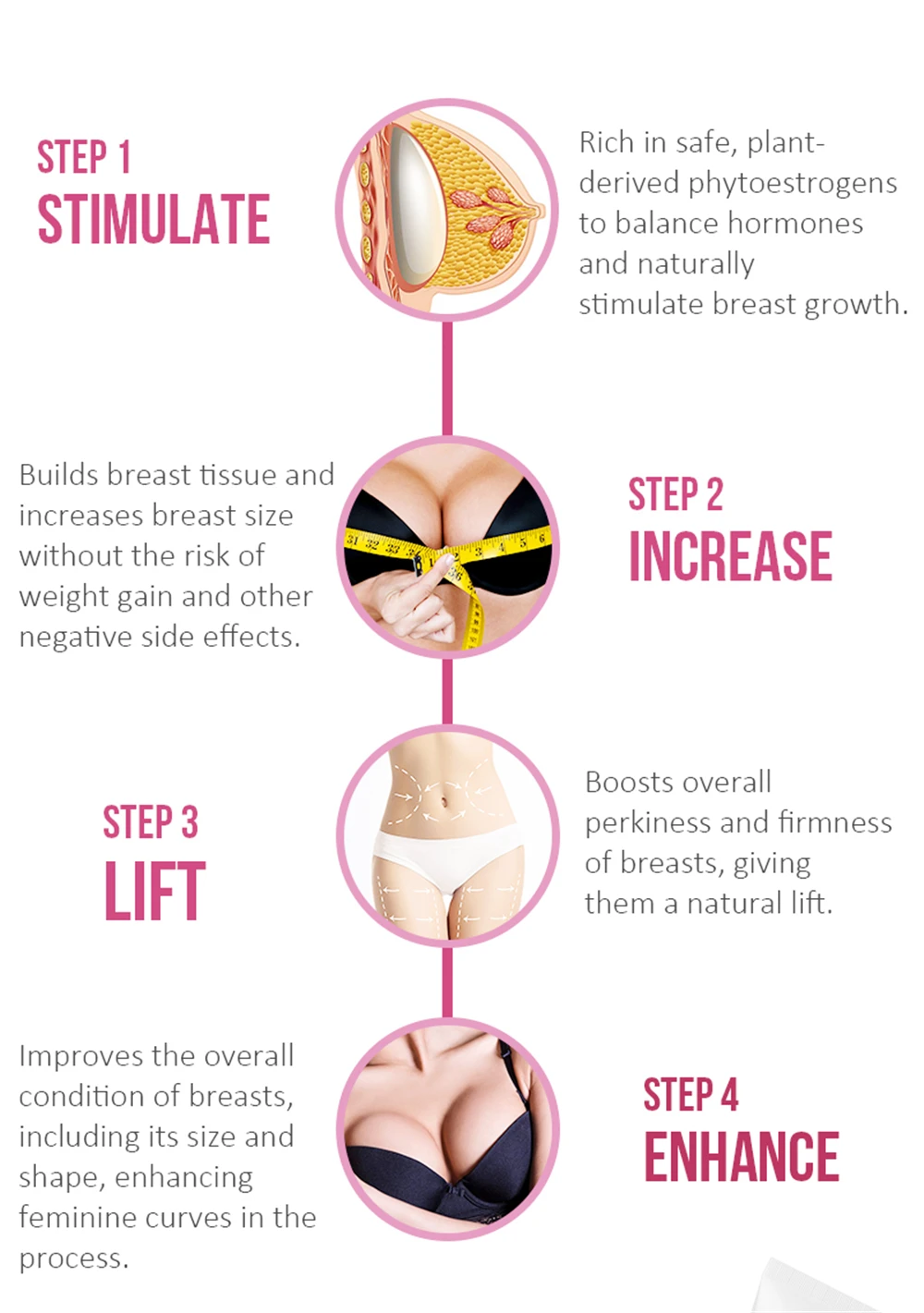 Подходит для:Для провисания, сморщенной груди и бедер, обильной хирургии грудного бедра не удалось, стремление к совершенству толпы тела.Особенности:Помогает укрепить и улучшить грудь и ягодицы с эксклюзивным комплексом активных и натуральных ингредиентов.Его подъемное действие может мгновенно затянуть ткань груди и бедер, помогает эффективно бороться с гравитацией, обеспечивает эластичность и поддержку.