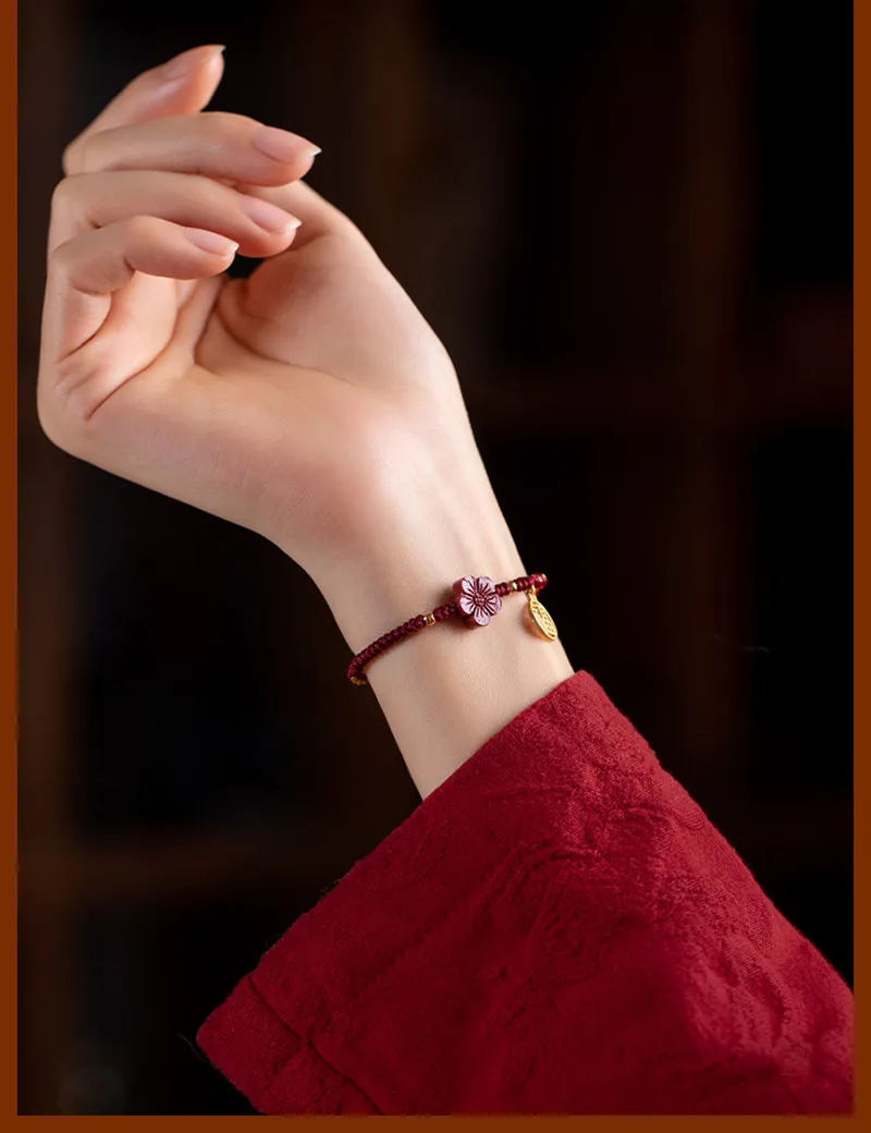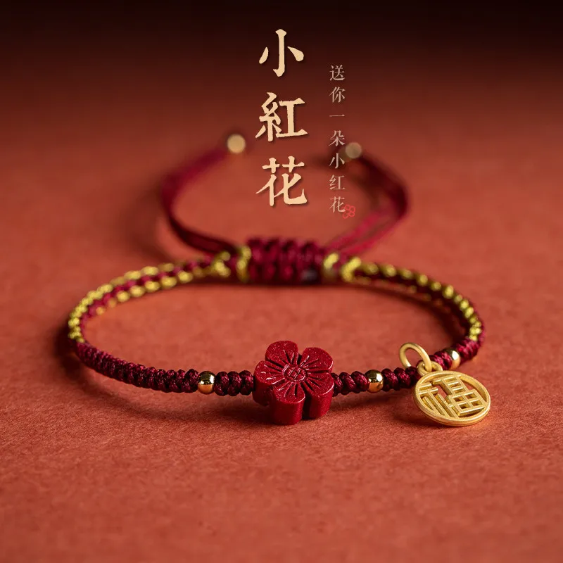 Натуральный фиолетовый Cinnabar Beauty Flower ручной работы Красный веревочный счастливый браслет женский мужской Fu Blessing браслет размер Отрегулируйте дропшиппинг