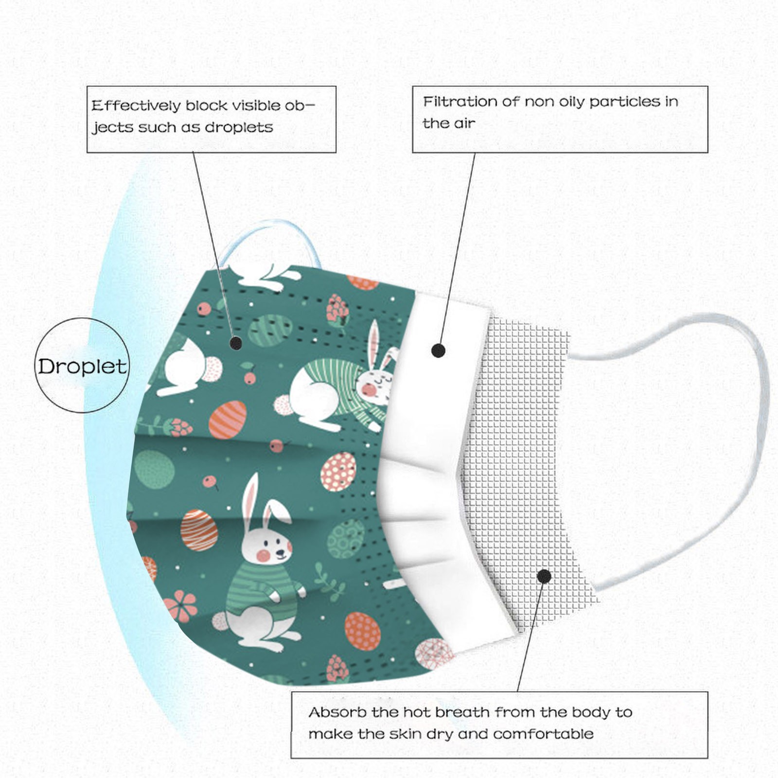10 шт взрослых Счастливой Пасхи защиты 3 слоя мультфильм одноразовые маски для лица