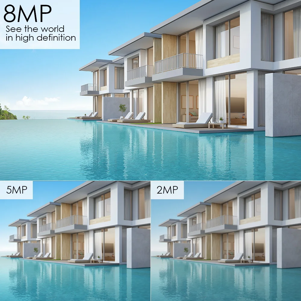Разрешение 2MP (1080P) / 5 MP / 8 MP (4K) для опции, для удовлетворения различных потребностей каждого.