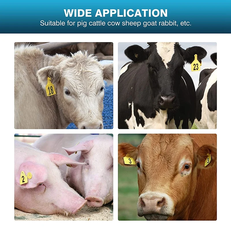 [Универсальные Ушные бирки для животных] этот идентификационный набор для ушей подходит для многих видов животных разных размеров, таких как коровы, овцы, козы, свиньи, олени, собаки и так далее. Маркировка является важной частью идентификации животных, которая позволяет животноводам, Селекционерам и ветеринарам удовлетворять их потребности в отслеживании и идентификации. Эти бирки используется для многих приложений, таких как сельское хозяйство, Лабораторные исследования и даже для владельцев домашних животных.