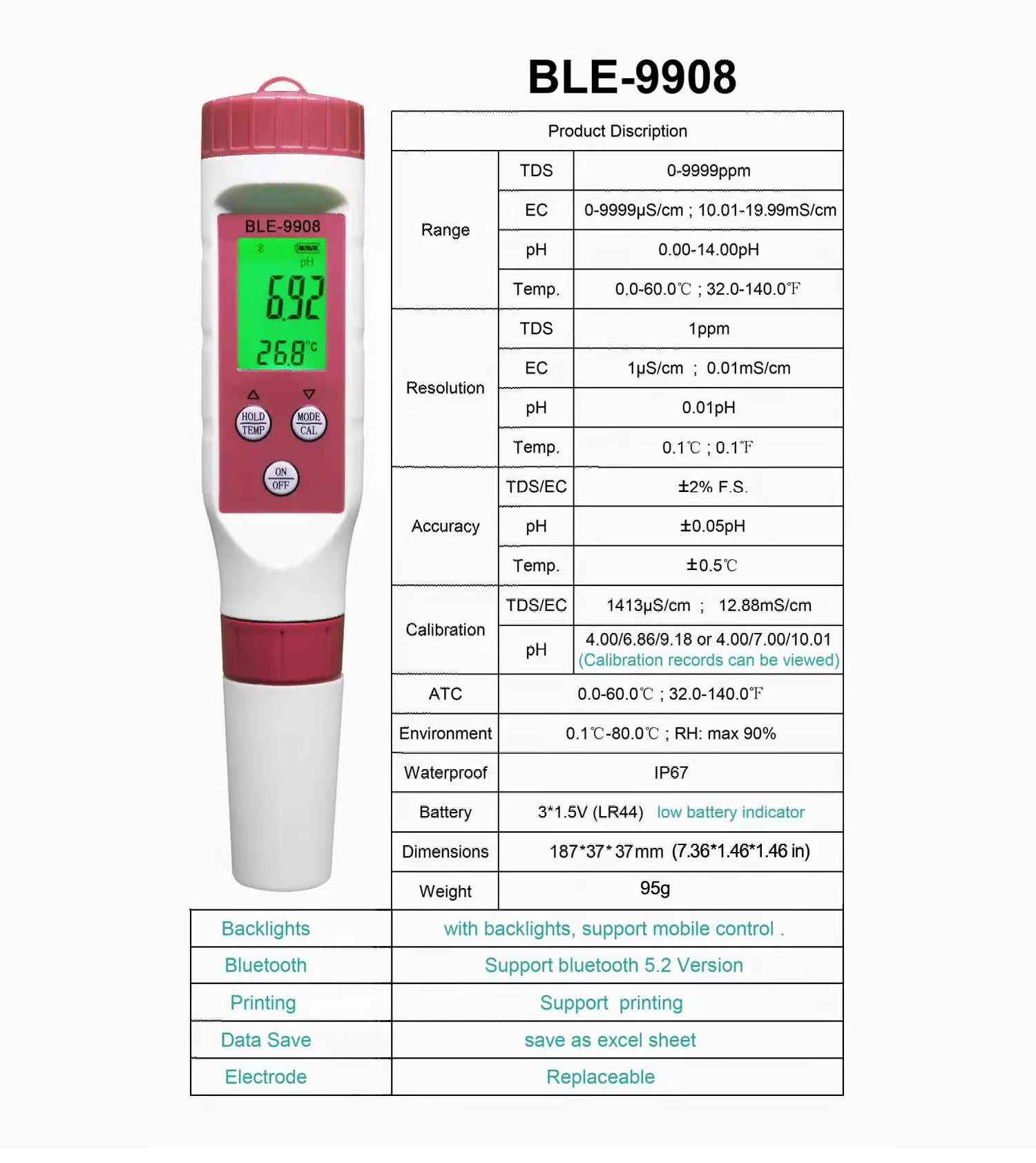 Диапазон TDS: 0-9999ppm