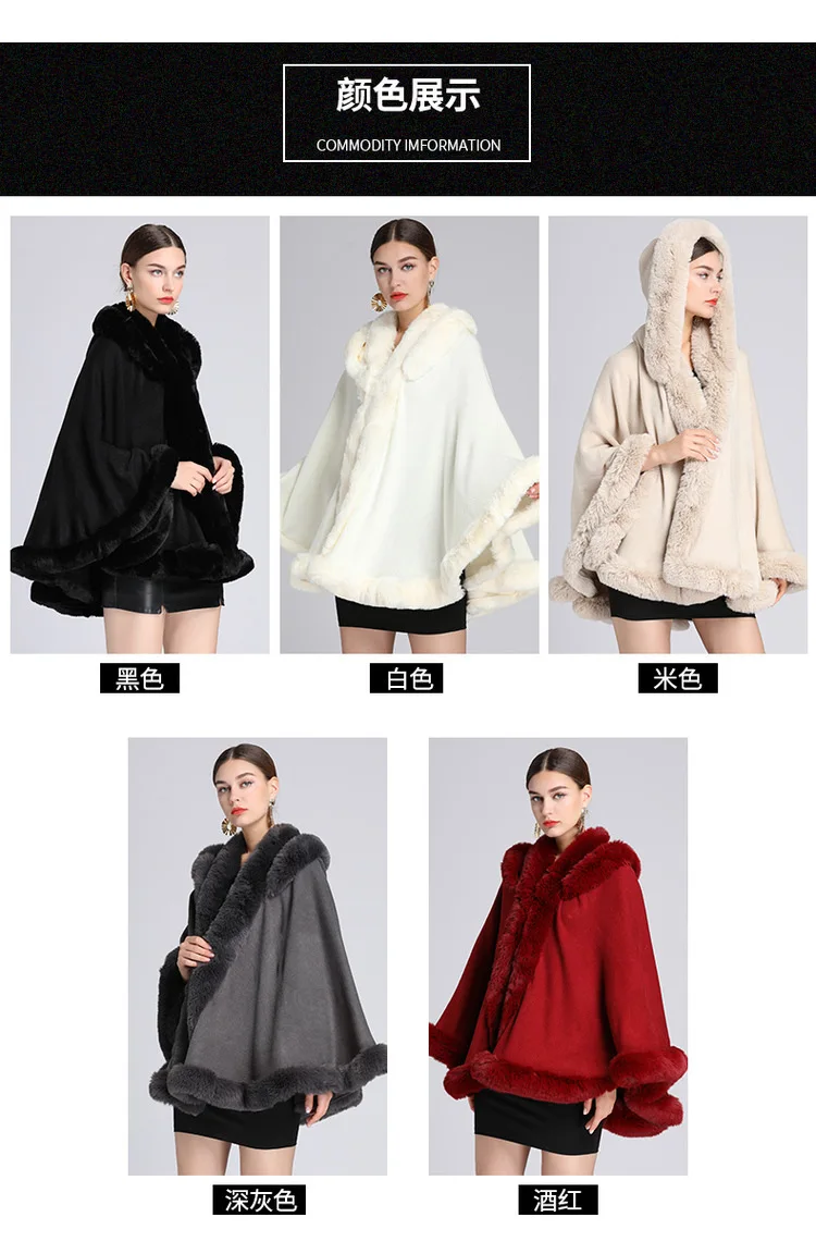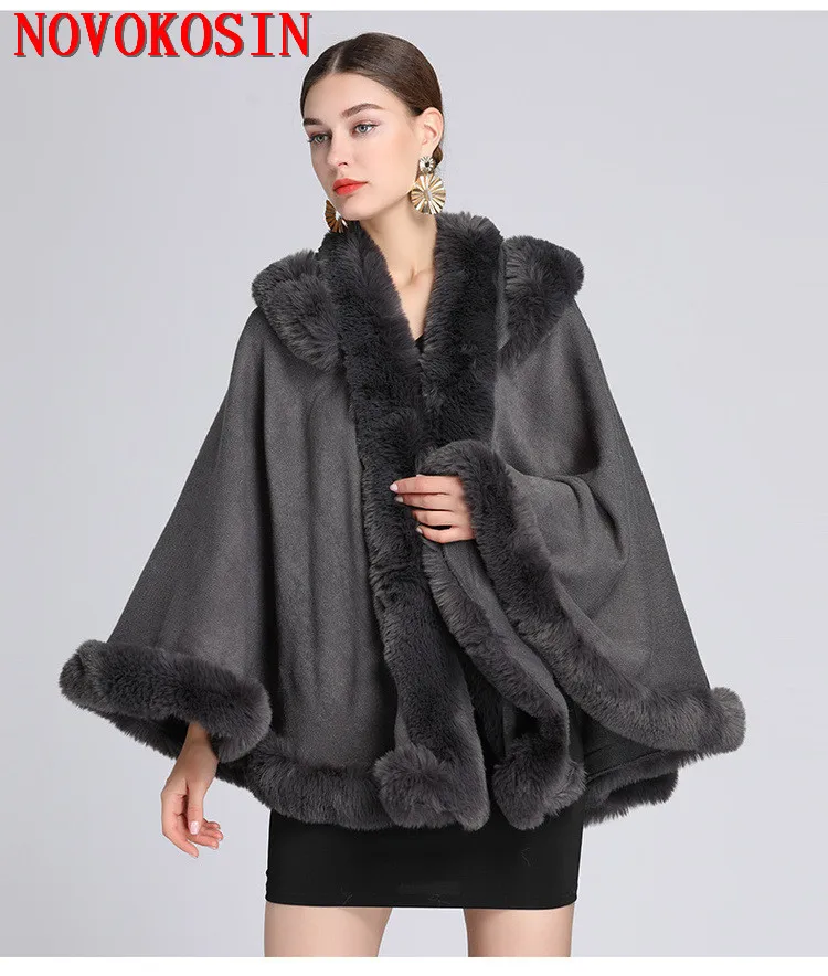 2021 зимнее женское пончо с большим воротником из искусственного меха, Длинная накидка с кисточками, толстое теплое пальто из искусственного шерстяного вельвета с капюшоном