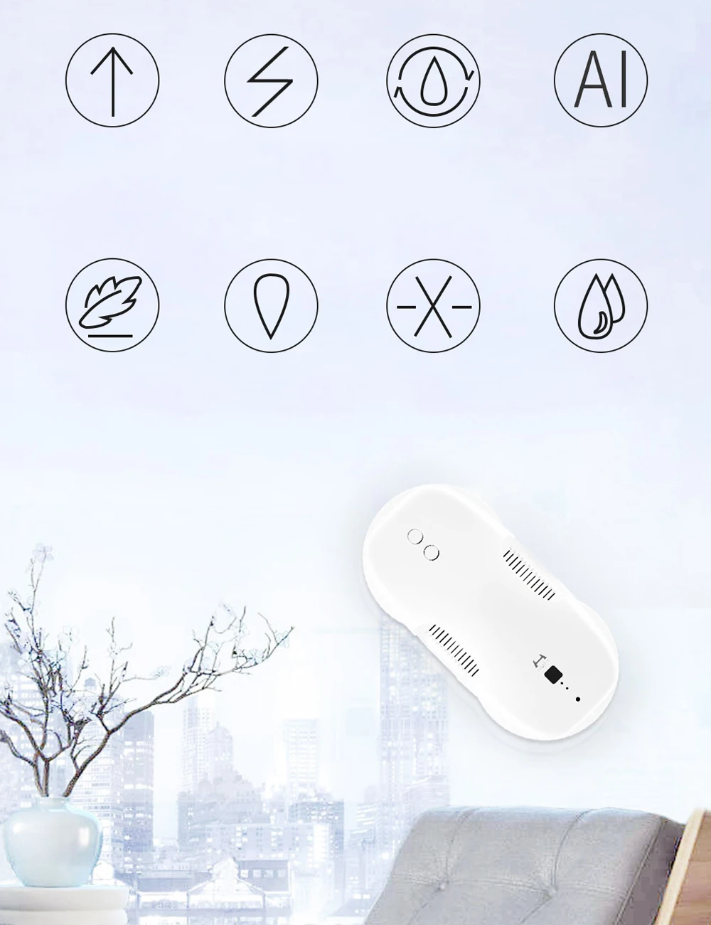 Машина автоматически регулирует частоту всасывания, конверсионную очистку окна в соответствии с сухой влажностью воздуха и различными фрикционными силами на поверхности стекла. Выдерживает 7 кг тяжести.