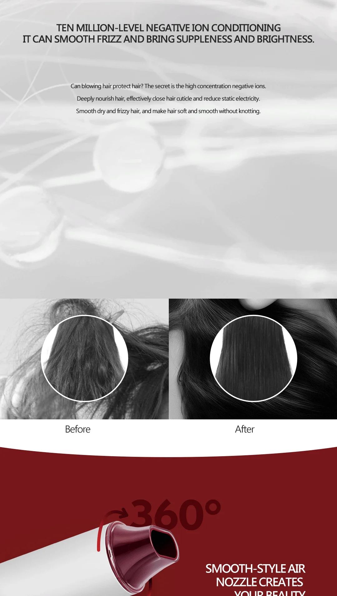 * Десятки миллионов высококонцентрированных отрицательных ионов, Бережный Уход за волосами и улучшение вьющихся волос.