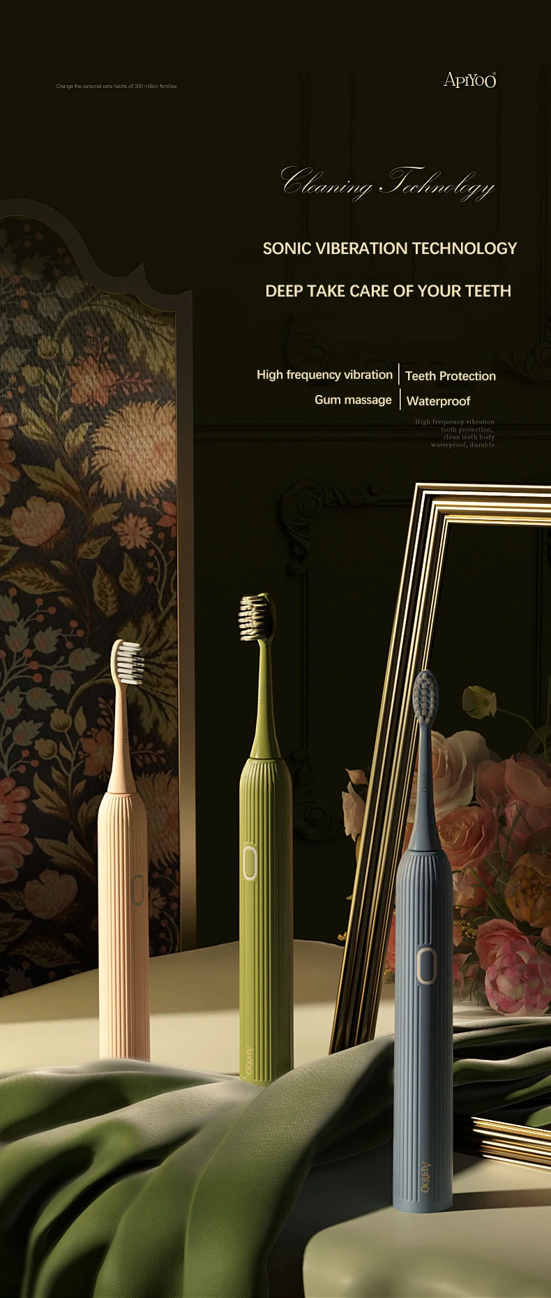 IPX7 водонепроницаемая, после чистки зубов, вы можете мыть звуковую электрическую зубную щетку водой, не беспокоясь о теле.