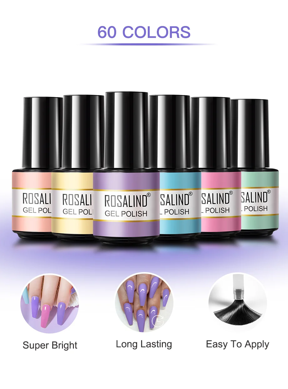 ROSALIND 7 мл отмачиваемый Гель-лак яркий для дизайна ногтей светодиодный/УФ-лампа