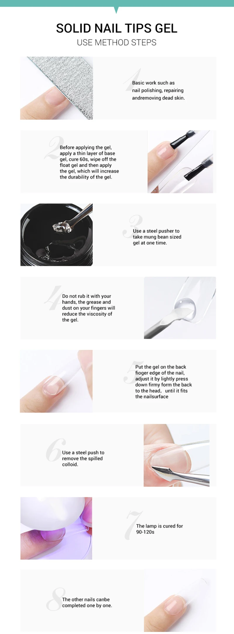 2. Возьмите соответствующее количество «твердого клея» и поместите его на поверхность ногтя.