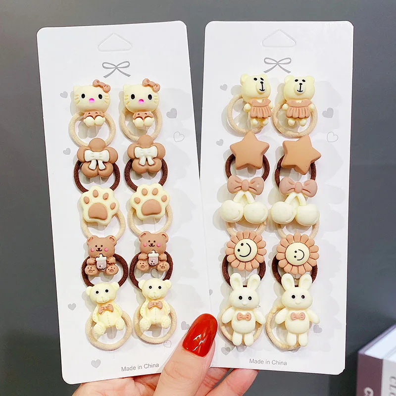 10 шт./компл., милые Мультяшные аниамлы, маленькие эластичные резинки для волос, Детские милые резинки для волос, Детские аксессуары для волос