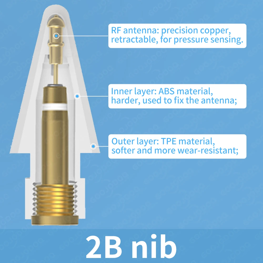 Внешний слой разделен на два вида твердости: внешний слой 2B мягче, что ближе к эффекту письма на бумаге; Внешний слой 2H немного прочнее, И надпись более гладкая.