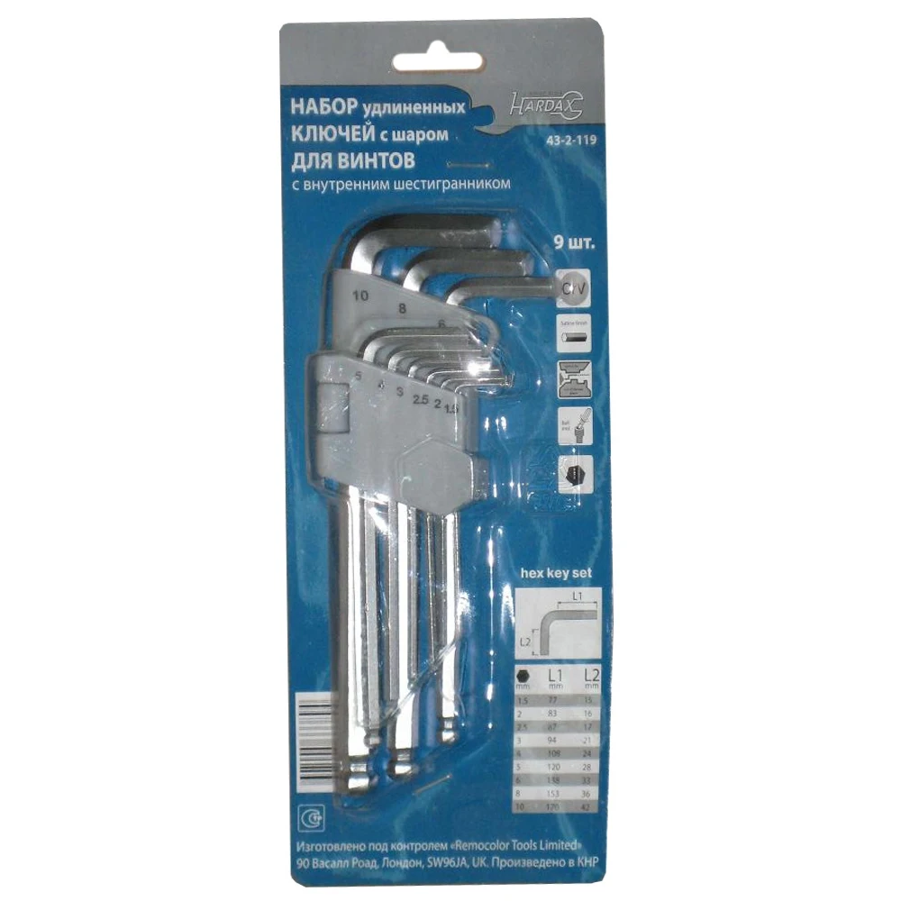 Набор имбусовых ключей удлиненных с шарниром в пластиковом дозаторе.