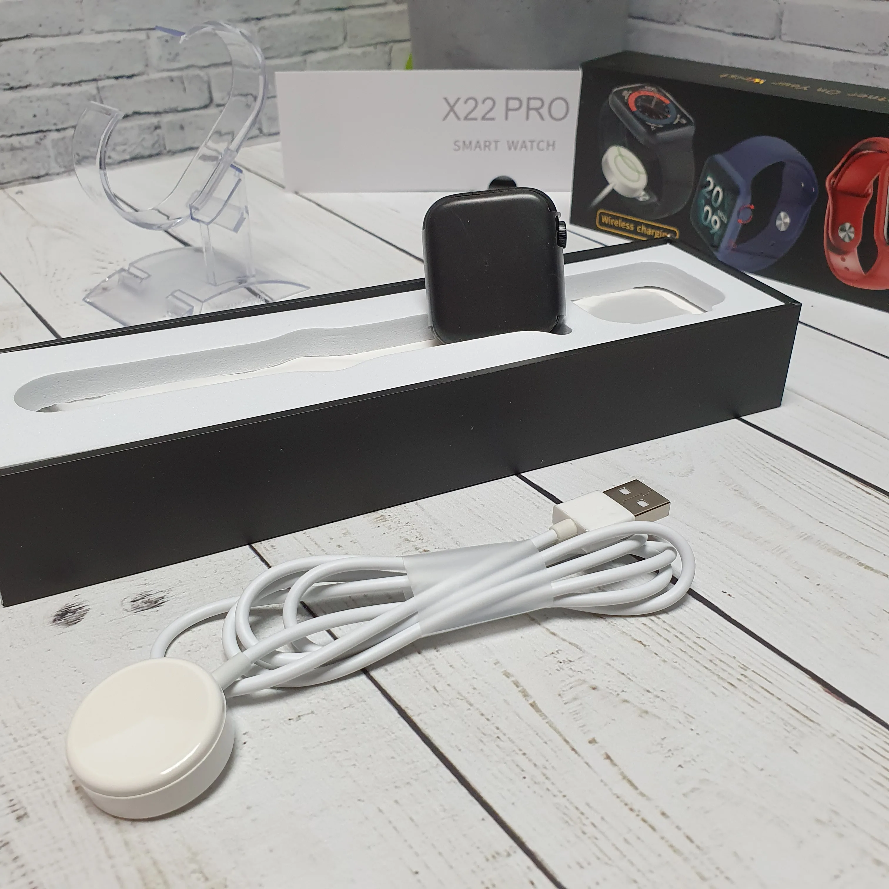 Умные часы X22 PRO 44mm имеют прямоугольный циферблат, который подходит как для мужчин, так и для женщин. Размер – 44 мм*38,4 мм * 11 мм, вес 45г.