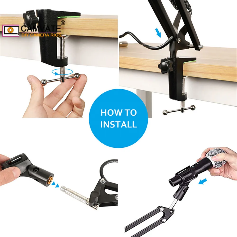 Регулируемая NB-39 подставка для микрофона CAMVATE, подставка для микрофона с зажимом C, микрофонный кабель для микрофона и настольного крепления