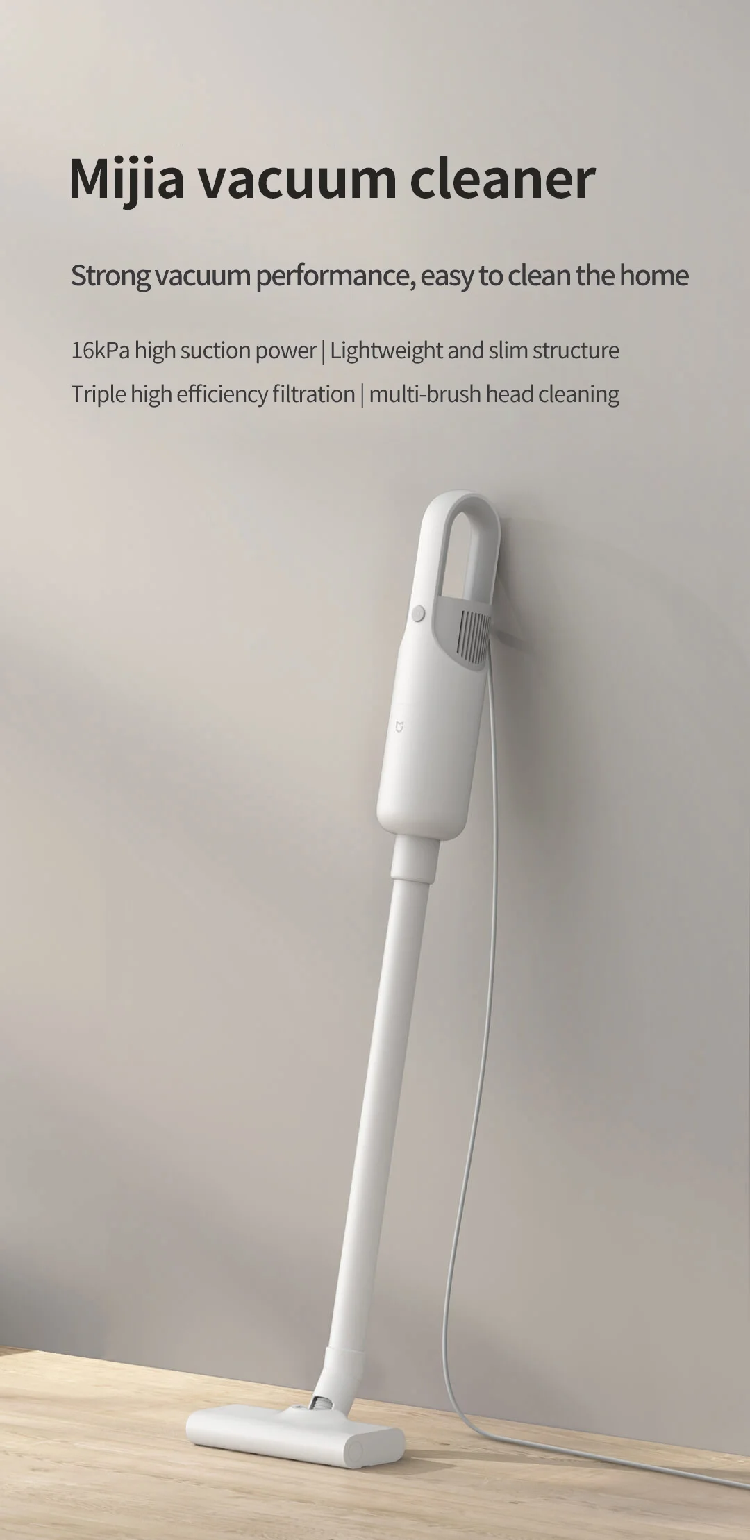 16 кПа сильное всасывание | Легкая и тонкая структура | Тройная Высокоэффективная фильтрация | Многощеточная Очистка головки