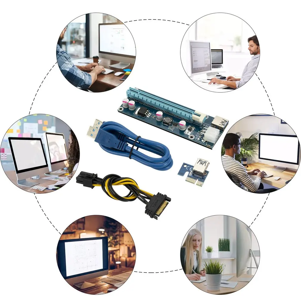 2. Карта адаптера имеет 6-контактный интерфейс для укрепления источника питания, так что источник питания графической карты не зависит от материнской платы, тем самым уменьшая нагрузку на материнскую плату, когда подключены несколько графических карт.