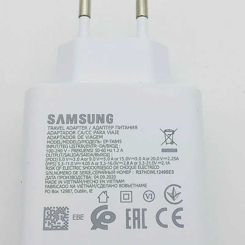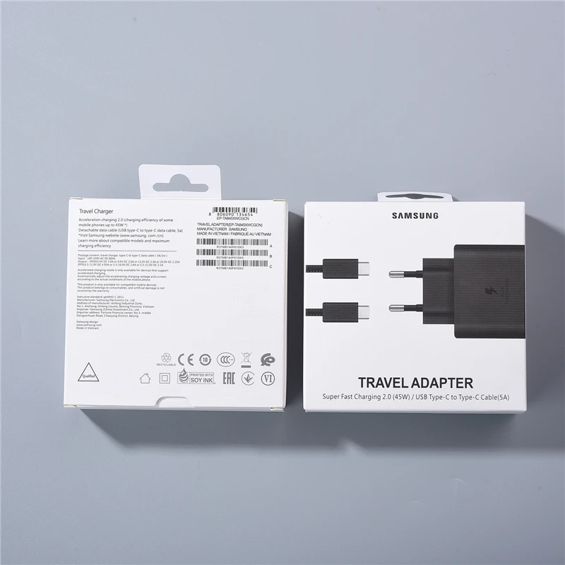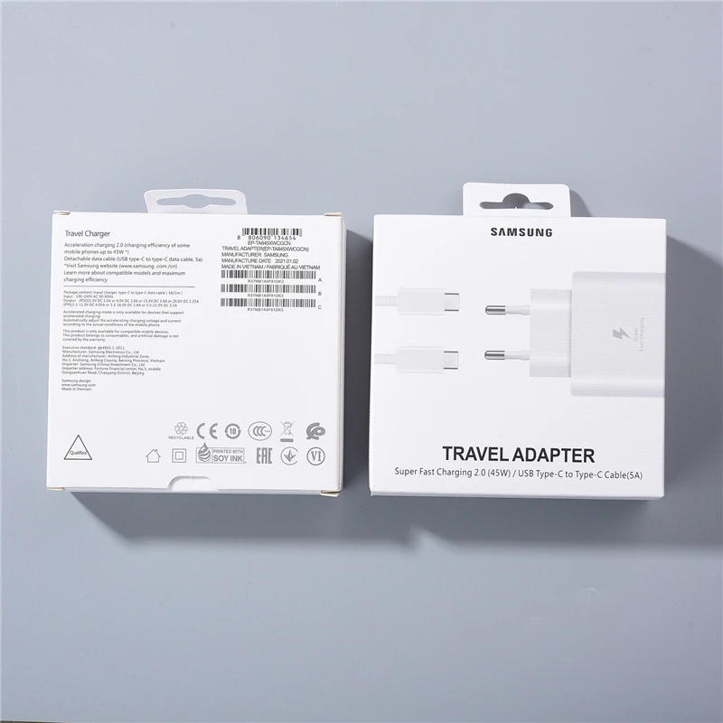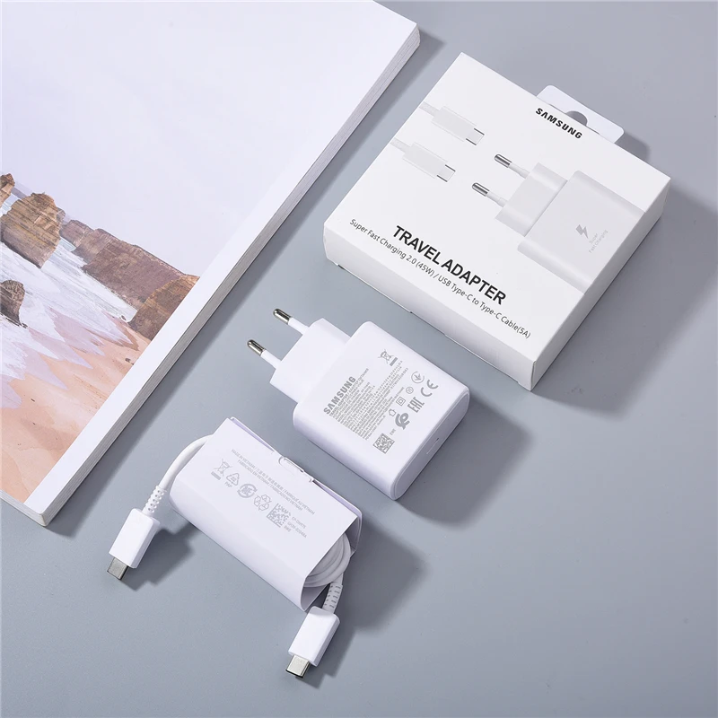 Оригинальное быстрое зарядное устройство 45 Вт ЕС Быстрый адаптер 5А PD Тип C кабель для Samsung GALAXY Note 20 10 + S20FE S10E S21Plus S22 Ultra Fold 3