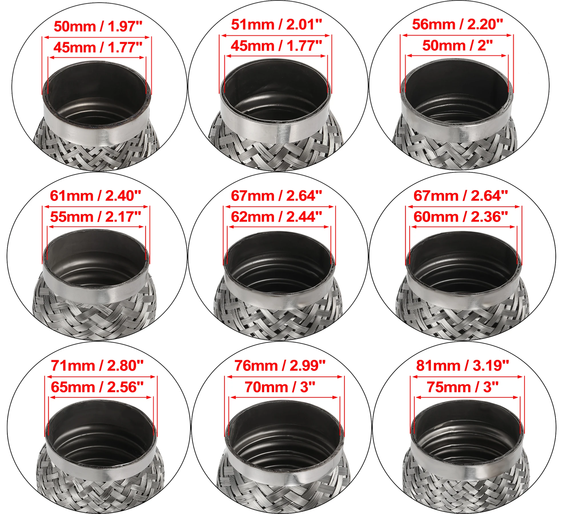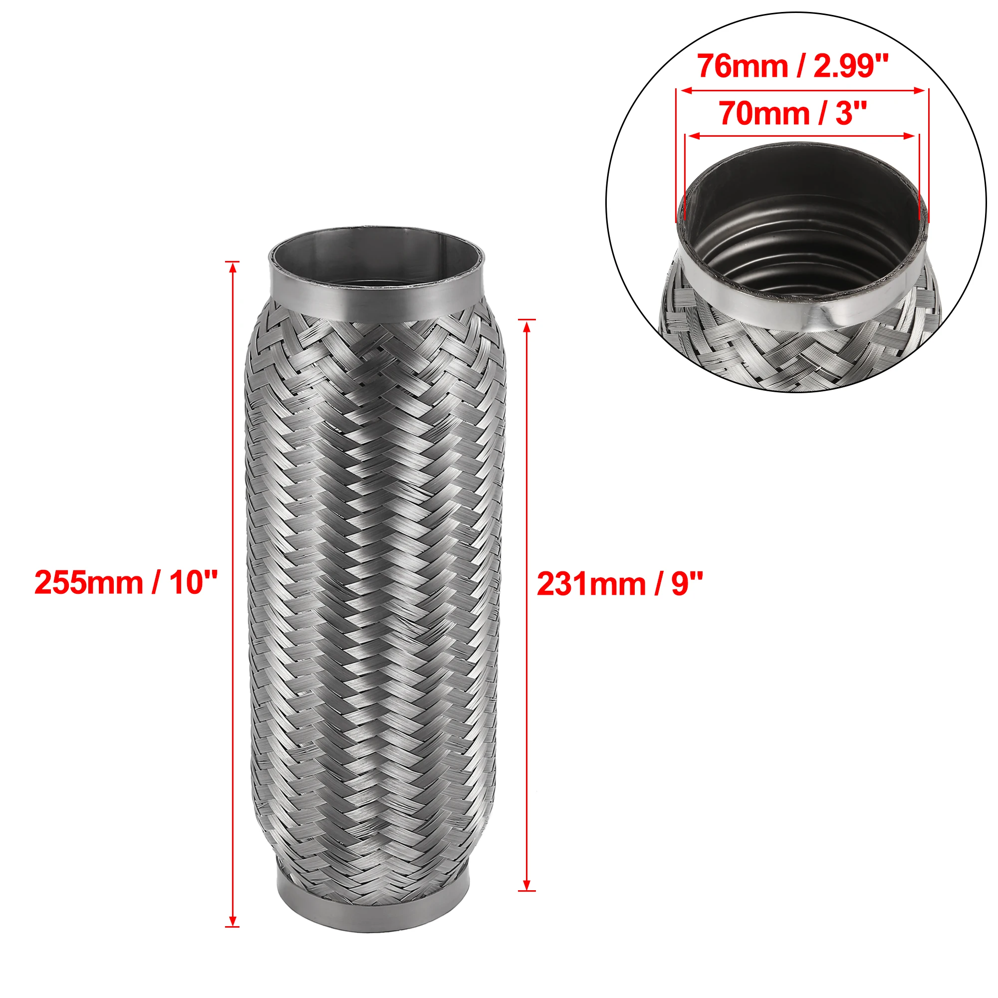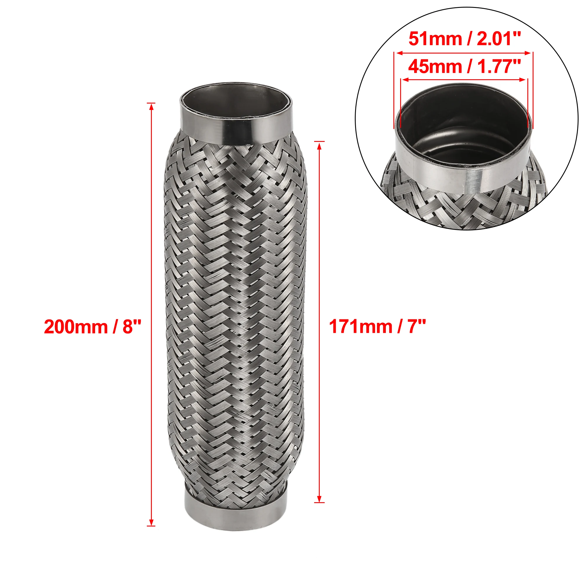 Эти гибкие выхлопные трубы предназначены для сварки при установке в выхлопной системе для изоляции шума, снятия вибрации и уменьшения напряжения на трубах внутренние сильфоны из нержавеющей стали для изоляции вибрации, внутренняя оплетка из нержавеющей стали для уменьшения шума и свиста.
