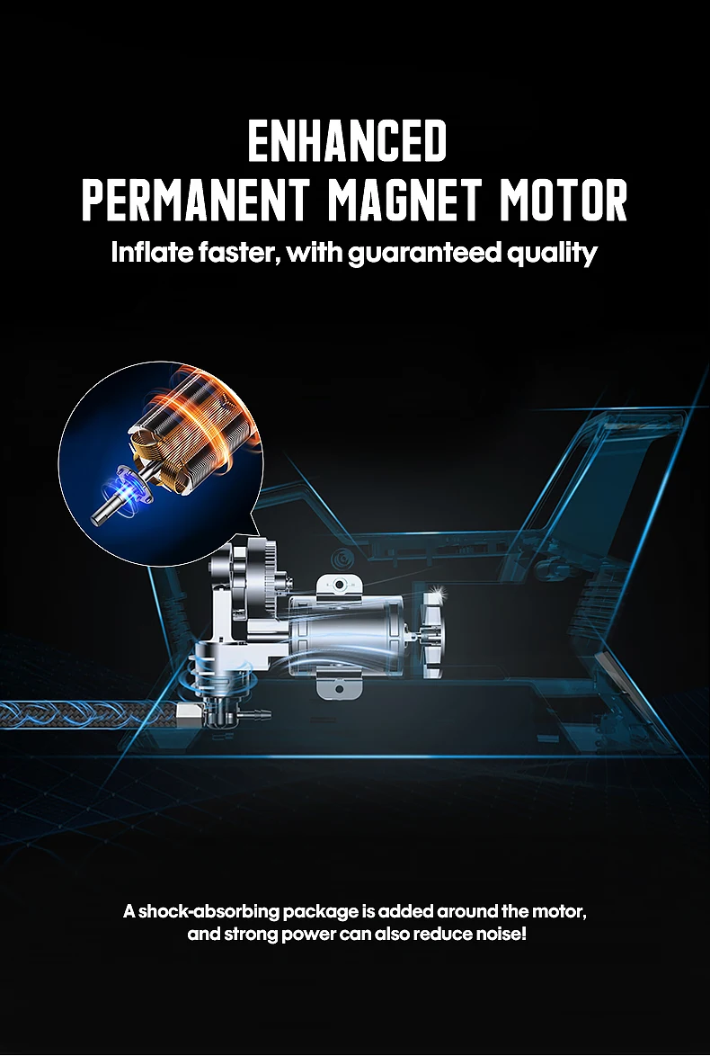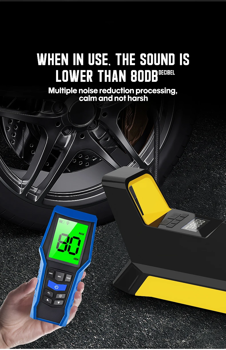 【Цифровой манометр и светодиодный светильник 】-Воздушный насос для накачки шин с ЖК-цифровым манометром, который может отображать давление в PSI, давление воздуха, кПа и кг/см². Встроенный яркий светодиодный светильник для легкой работы в темных рабочих местах.