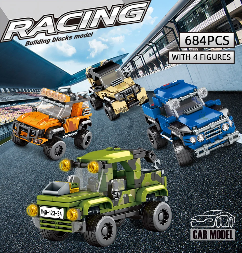 Содержание упаковки: 4 шт. гоночный автомобиль строительные блоки и подробные инструкции