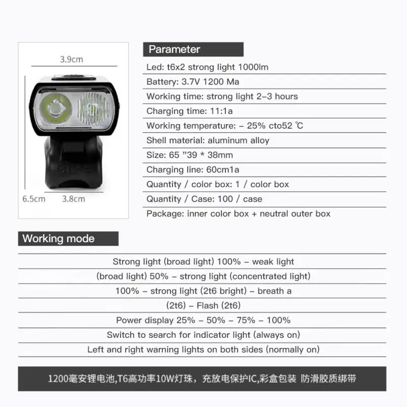 1 * фара 1 * USB кабель