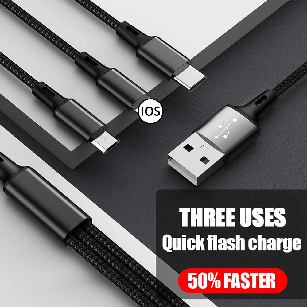 USB 3 в 1 кабель Micro Type C зарядное устройство мульти Usb порт несколько Usb зарядный шнур Usbc мобильный телефон провод для Samsung Iphone Xiaomi