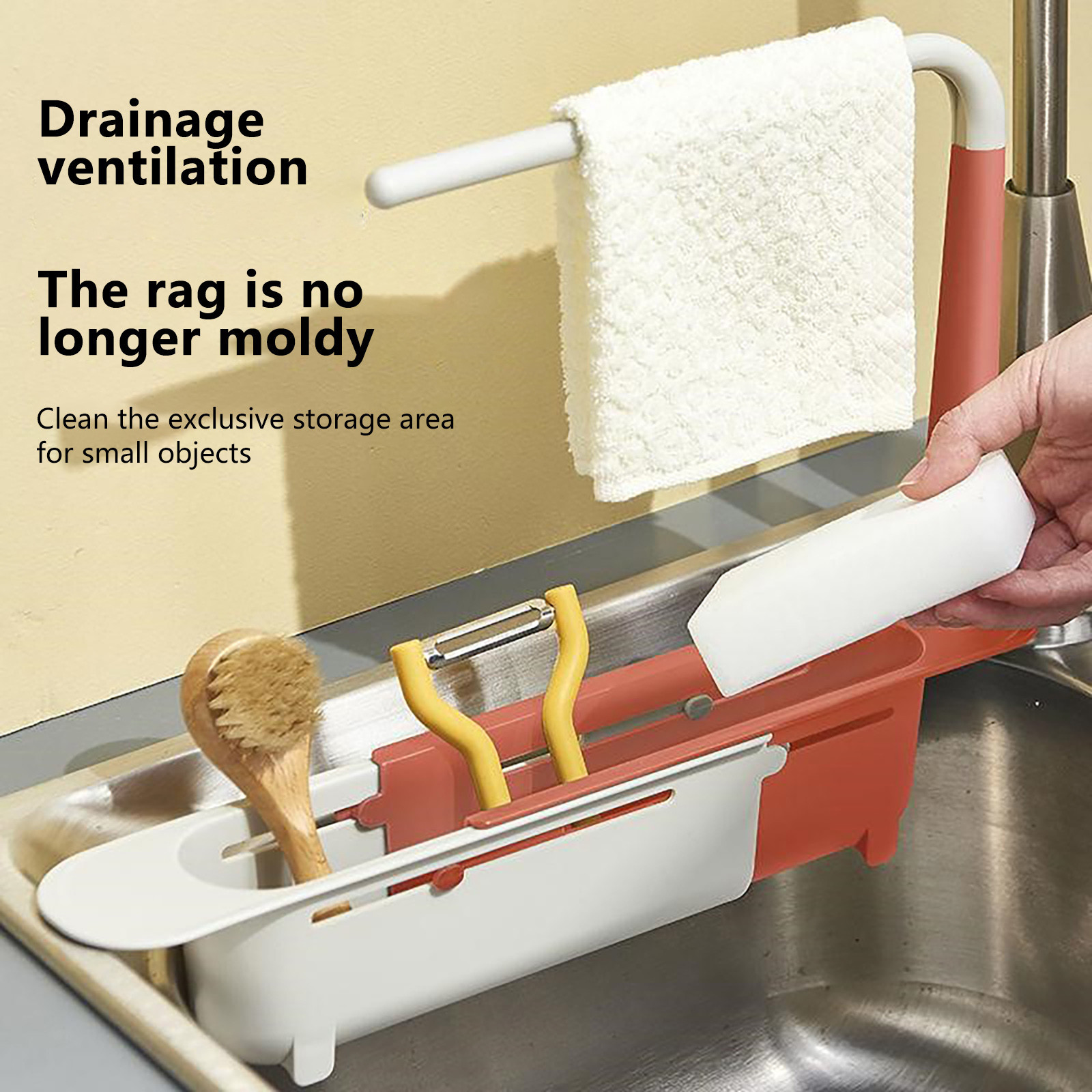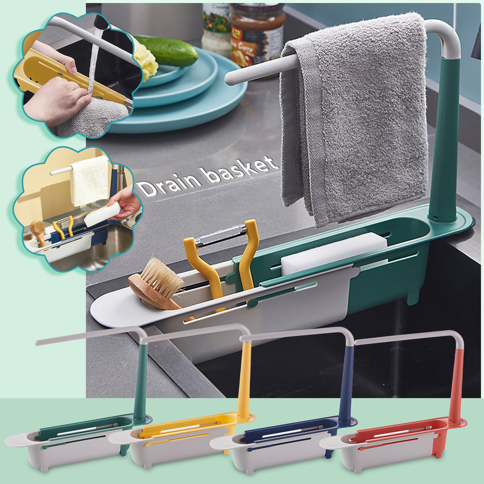 Телескопический набор для раковины включает в себя дренажное основание и 2 стойки для подвешивания полотенец, чтобы сохранить ткань сухой и проветриваемой. Вы также получите 2 силиконовых кисти. Набор прост в установке, легко разбирается и моется.