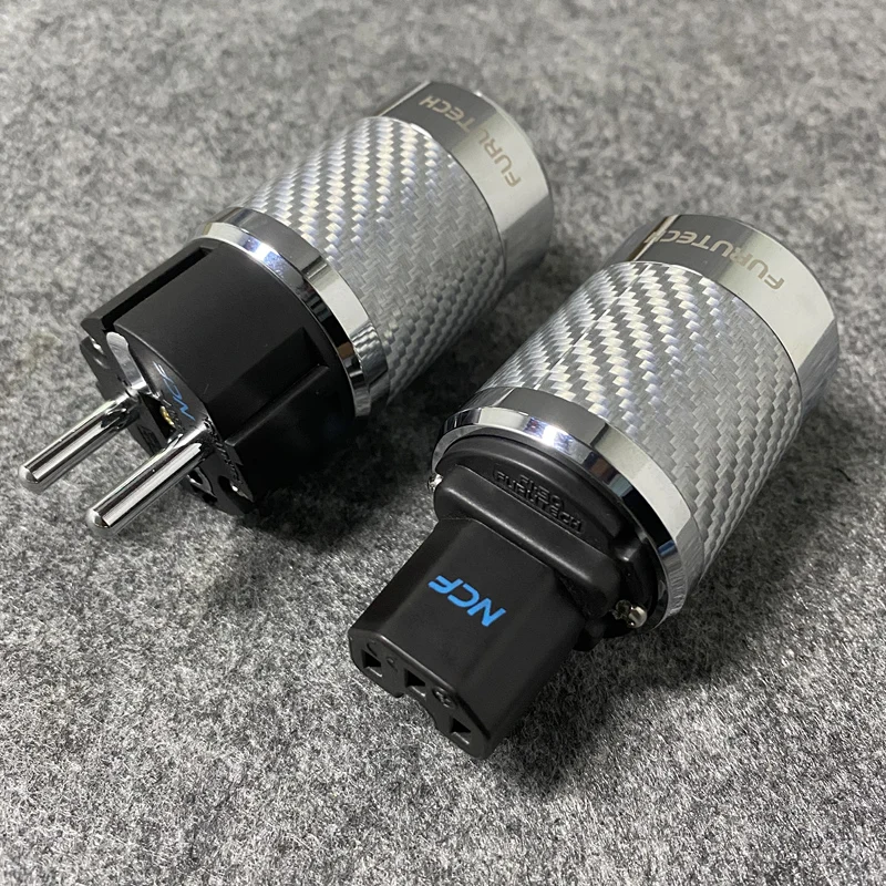 A multilayer nonmagnetic stainless steel and silver plated carbon fiber shell incorporates a special damping and insulating acetal copolymer. Furutech settled on stainless and silver plated carbon fiber for the outer housing after extensive listening sessions with Japanese industry figures and audiophiles.